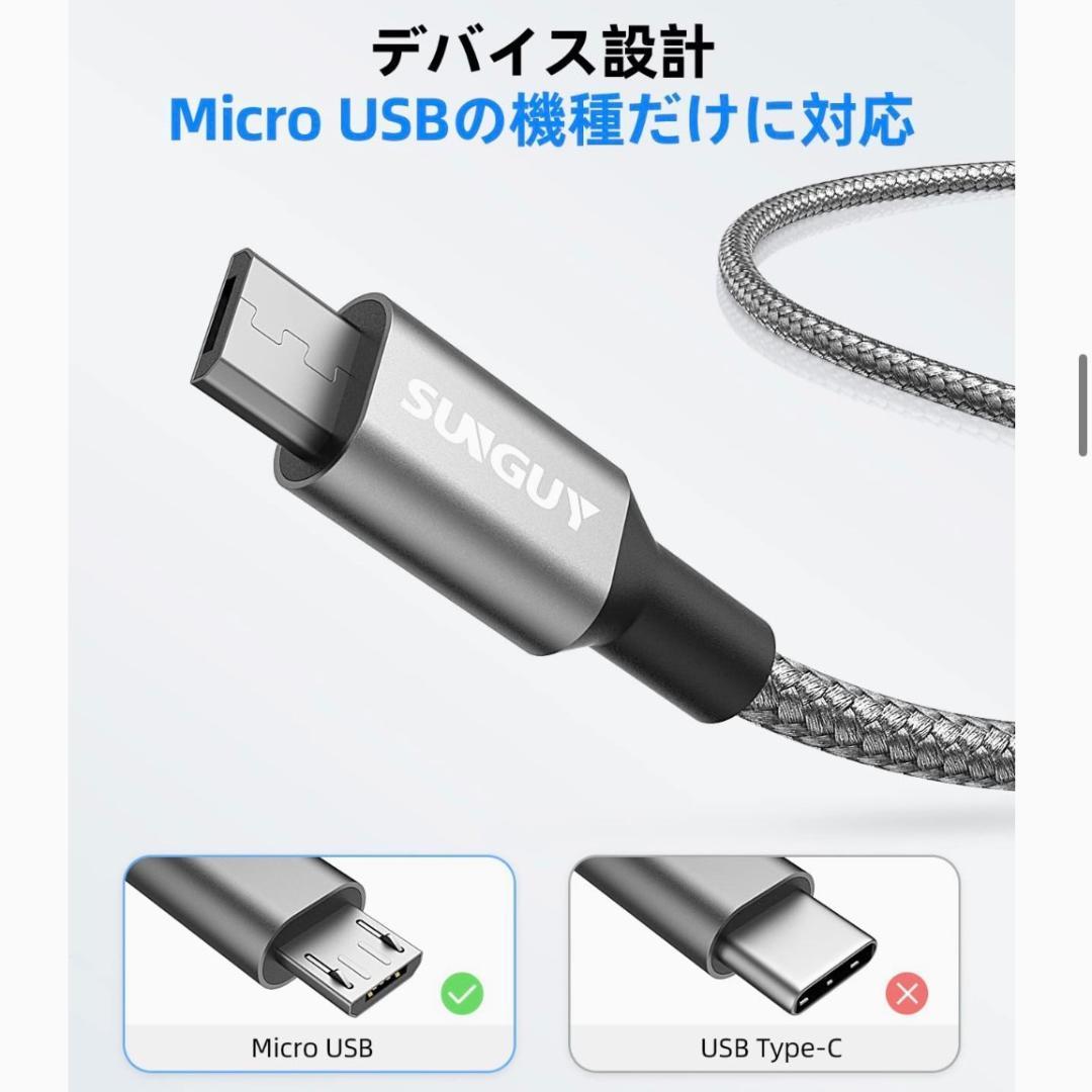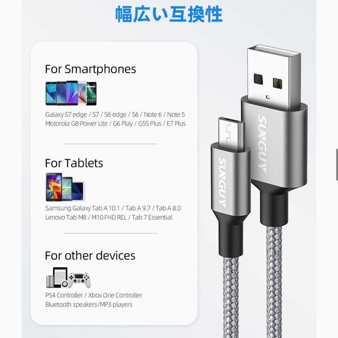【高耐久ナイロン編み】micro usb ケーブルの被覆は柔軟性と耐久性に優れているナイロン素材です、ビニール素材に有りがちの経年劣化によるべたつきがありません。