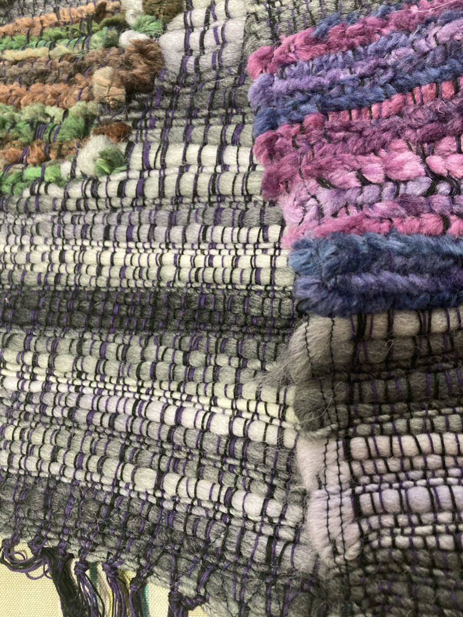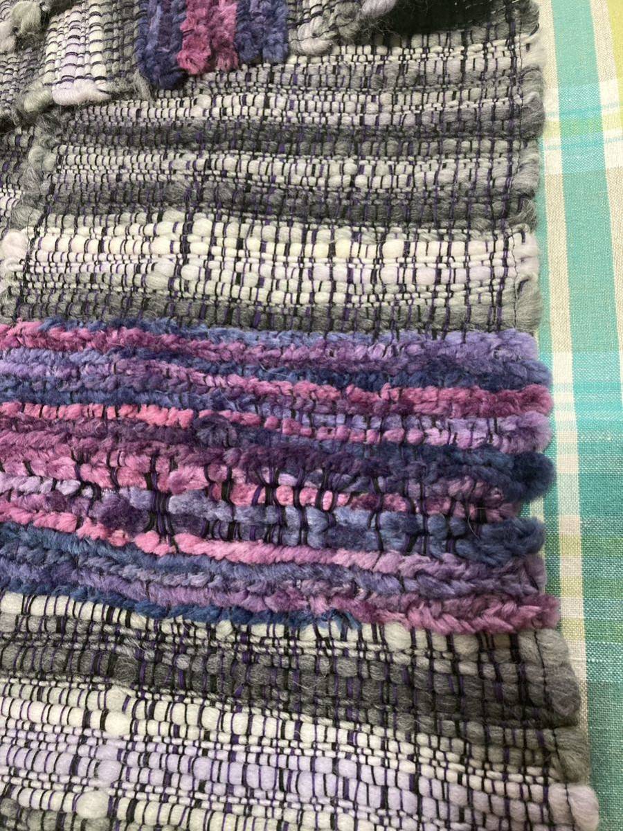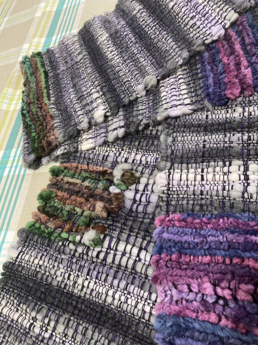 ☆ハンドメイド☆手織り一点もの ウールマフラー グレー/パープル マルチカラー 約横190cm×高さ25cm 美品