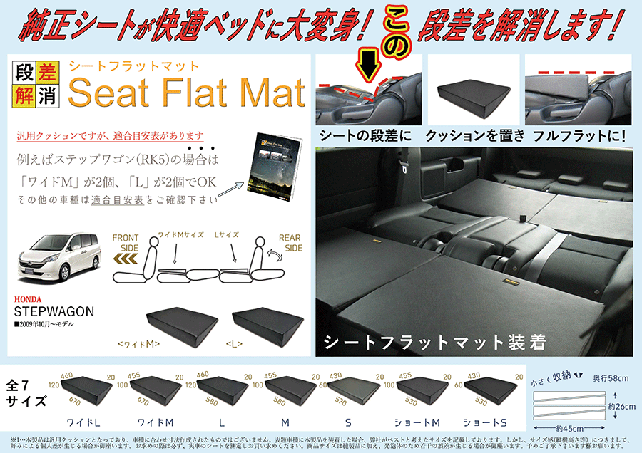 製品説明 | 置くだけで愛車のシートの段差を解消しベッドルームに変身 純正シートの段差部分に「シートフラットマット」を置くだけのかんたん設置でフラット空間を作れます。旅行の予定を入れにくい方や長距離移動が多い方、イベントの前乗りに便利。 また、宿泊費を軽減できるので現地での予算にゆとりが。 収納もとってもコンパクト。是非愛車に積んでみたことのない景色へ出掛けてみてはいかがでしょう。 |