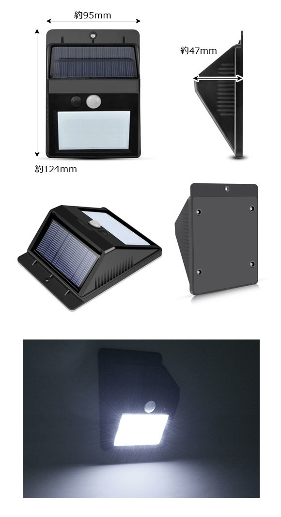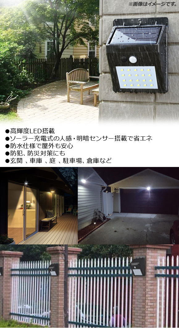●ソーラー充電式の人感・明暗センサー搭載で省エネ