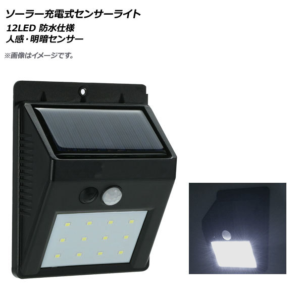 AP LEDソーラー充電式センサーライト 12LED 人感・明暗センサー 防水仕様 玄関、ガレージなどに! AP-UJ0530-12LED