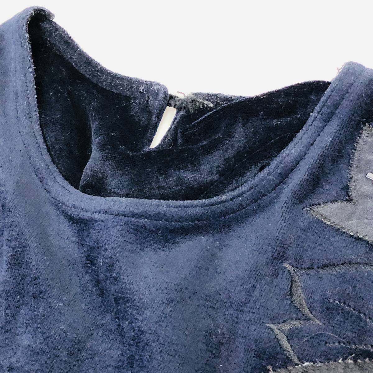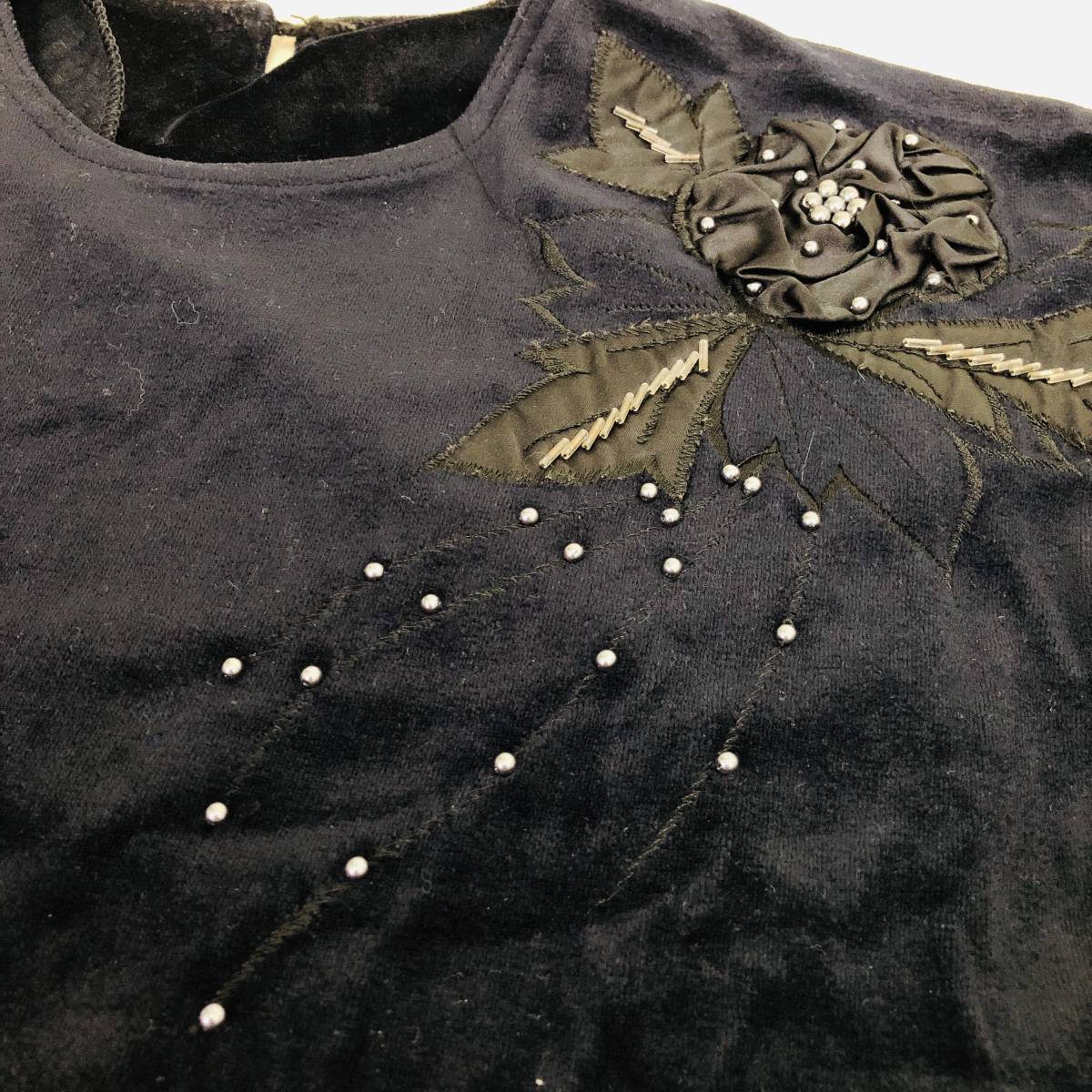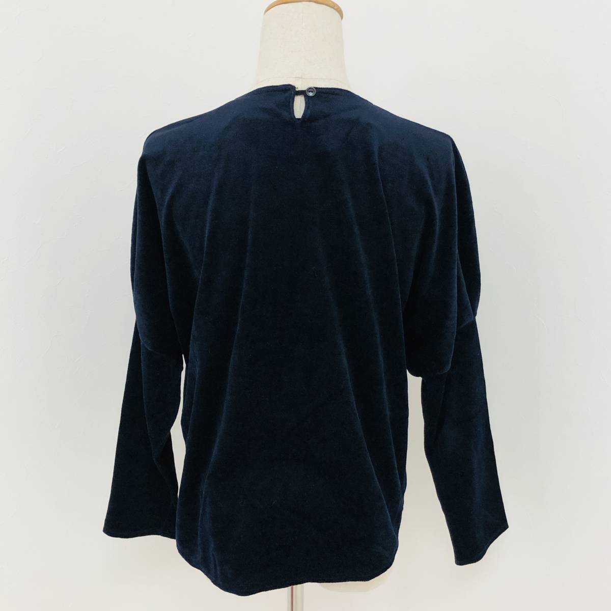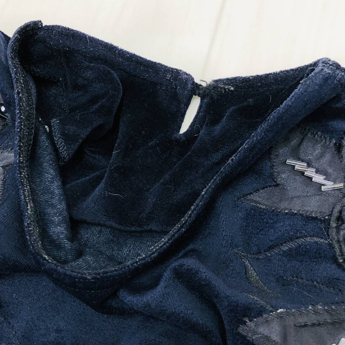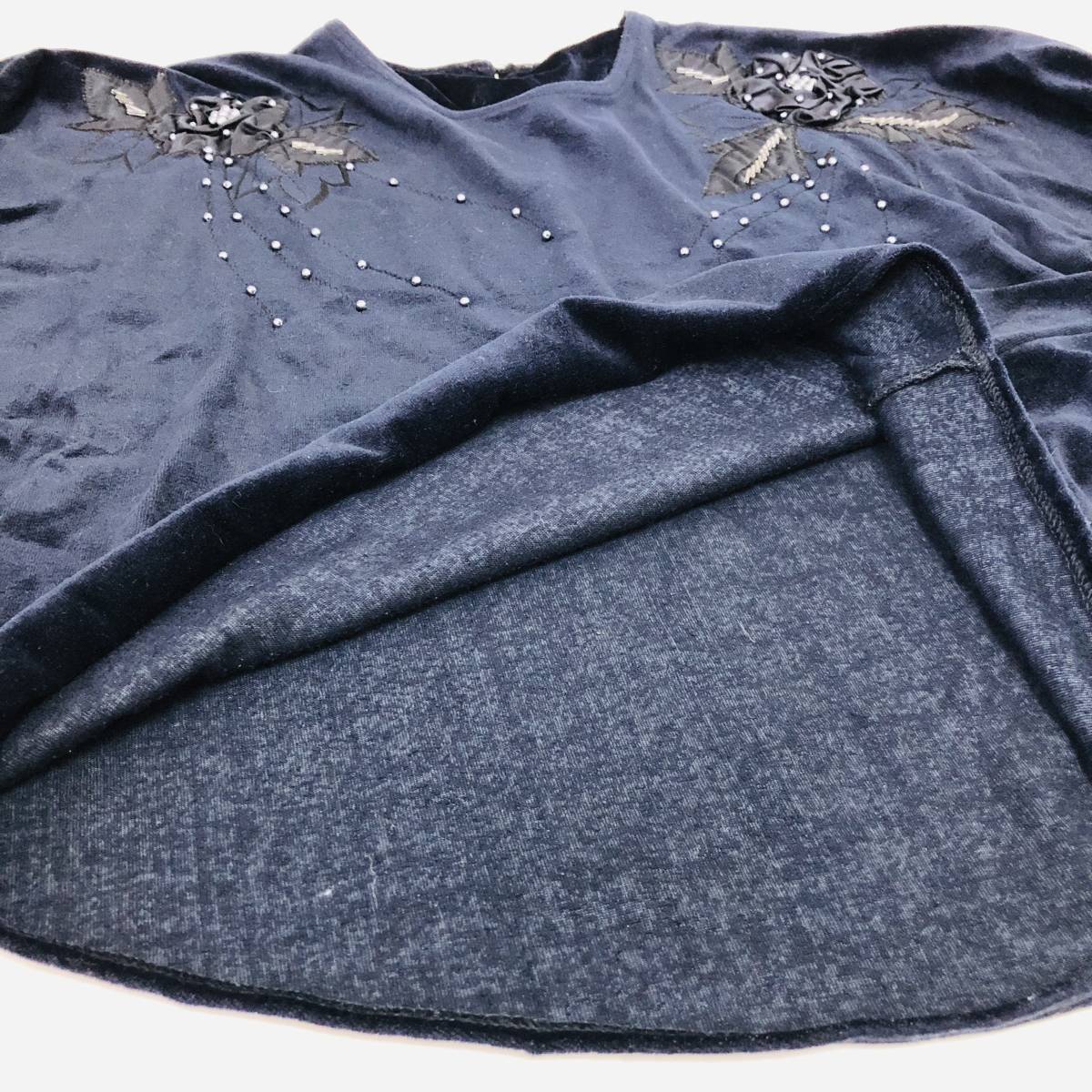 a01153 美品 トップス 長袖 丸首 ベロア調 ビーズ 花飾り ネイビー 秋 冬 昭和レトロ エレガント レディース レトロヴィンテージスタイル