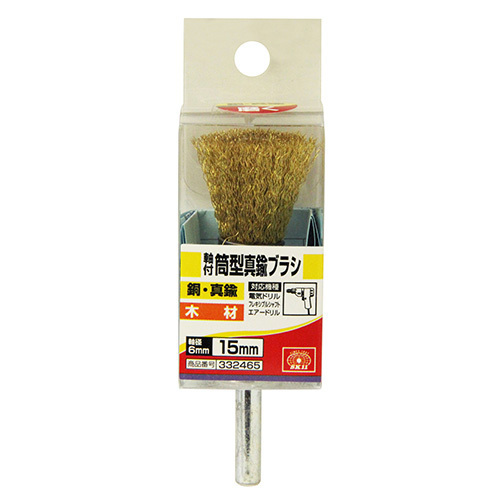 SK11 軸付筒型真中ブラシ 15mm 研磨 電動ドリルアクセサリ 塗装ハガシ バリ取り