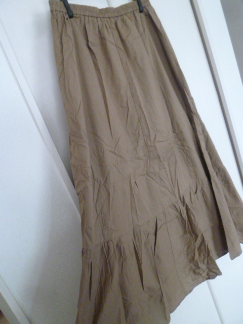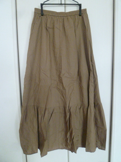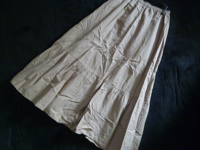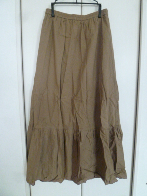 GU/ジーユー◇ベージュ裾フリルティアードロングスカートL/コットン◇a418SK