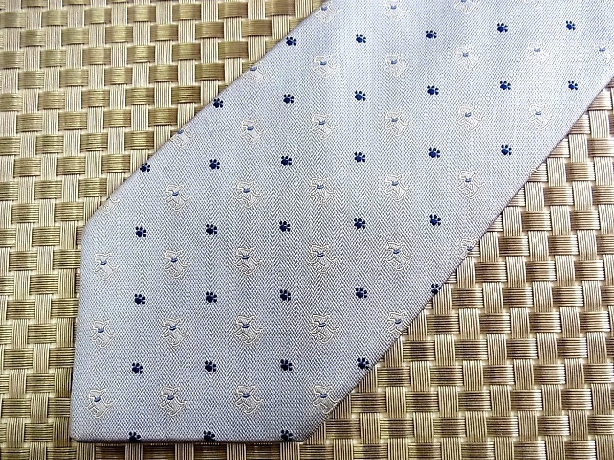 ♪31171C♪良品【刺繍 犬 テリア 動物 足あと 柄】ラルフローレン【CHAPS】ネクタイ