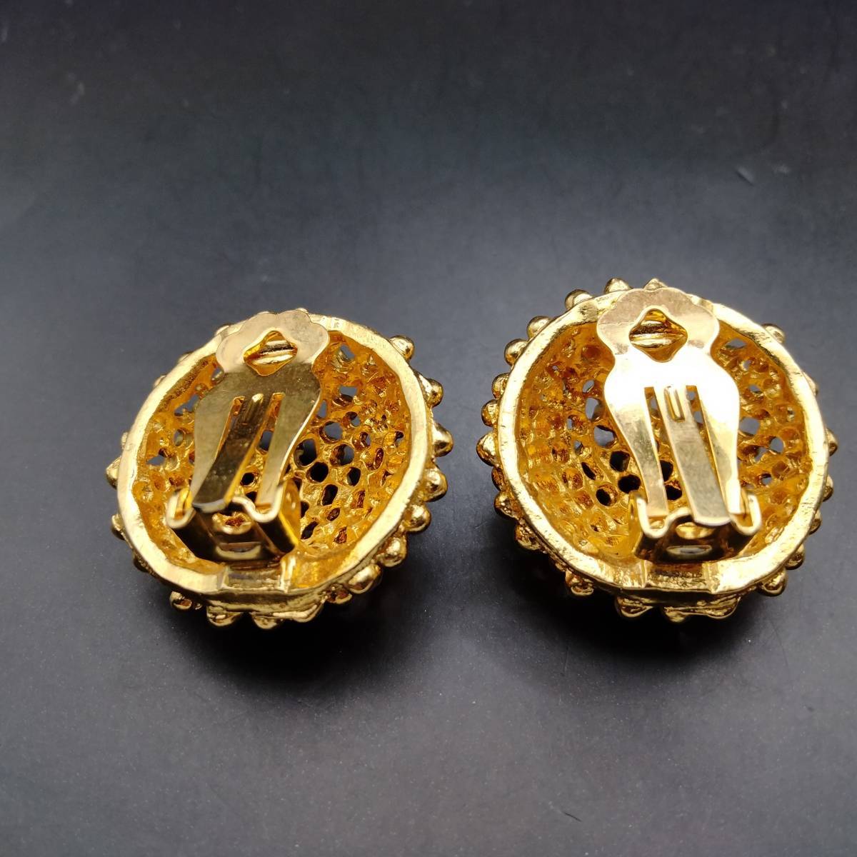 たんぽぽ ラウンド ゴールドトーン ブリオン 透かし ビンテージ ピアス イヤリング 昭和レトロ コスチューム ジュエリー 輸入 6S-8