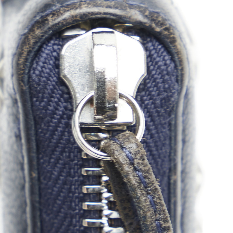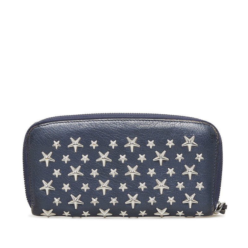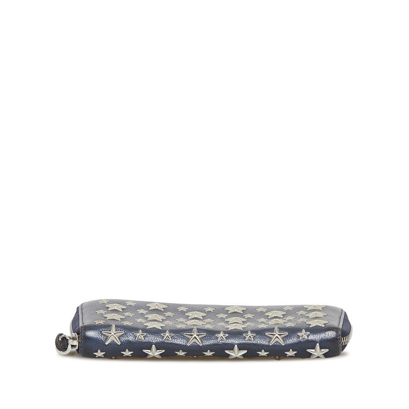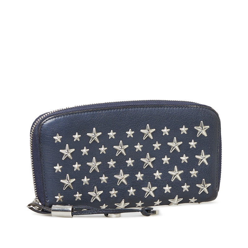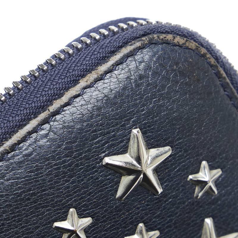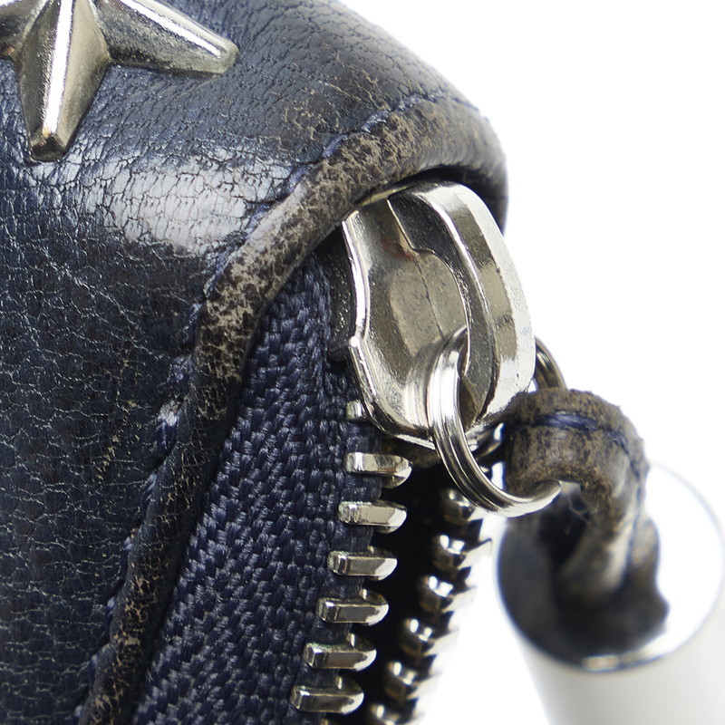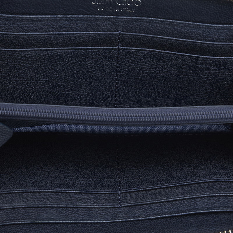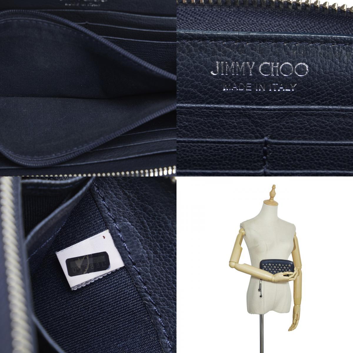 ジミーチュウ ラウンドファスナー クリスタル ロングウォレット 長財布 01388L ネイビー シルバー レザー レディース JIMMY CHOO【中古】