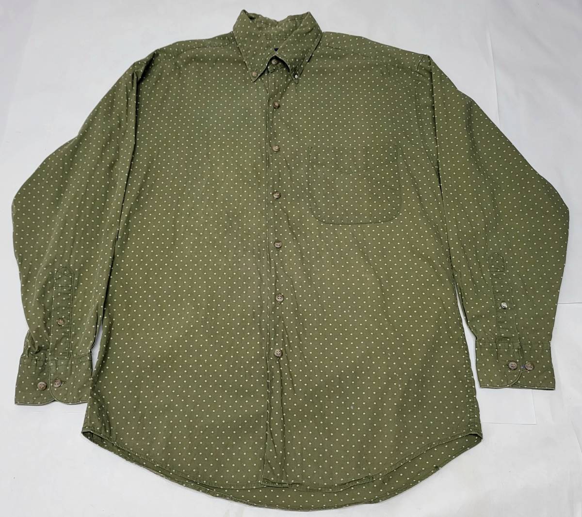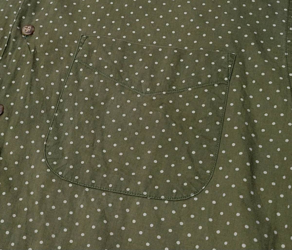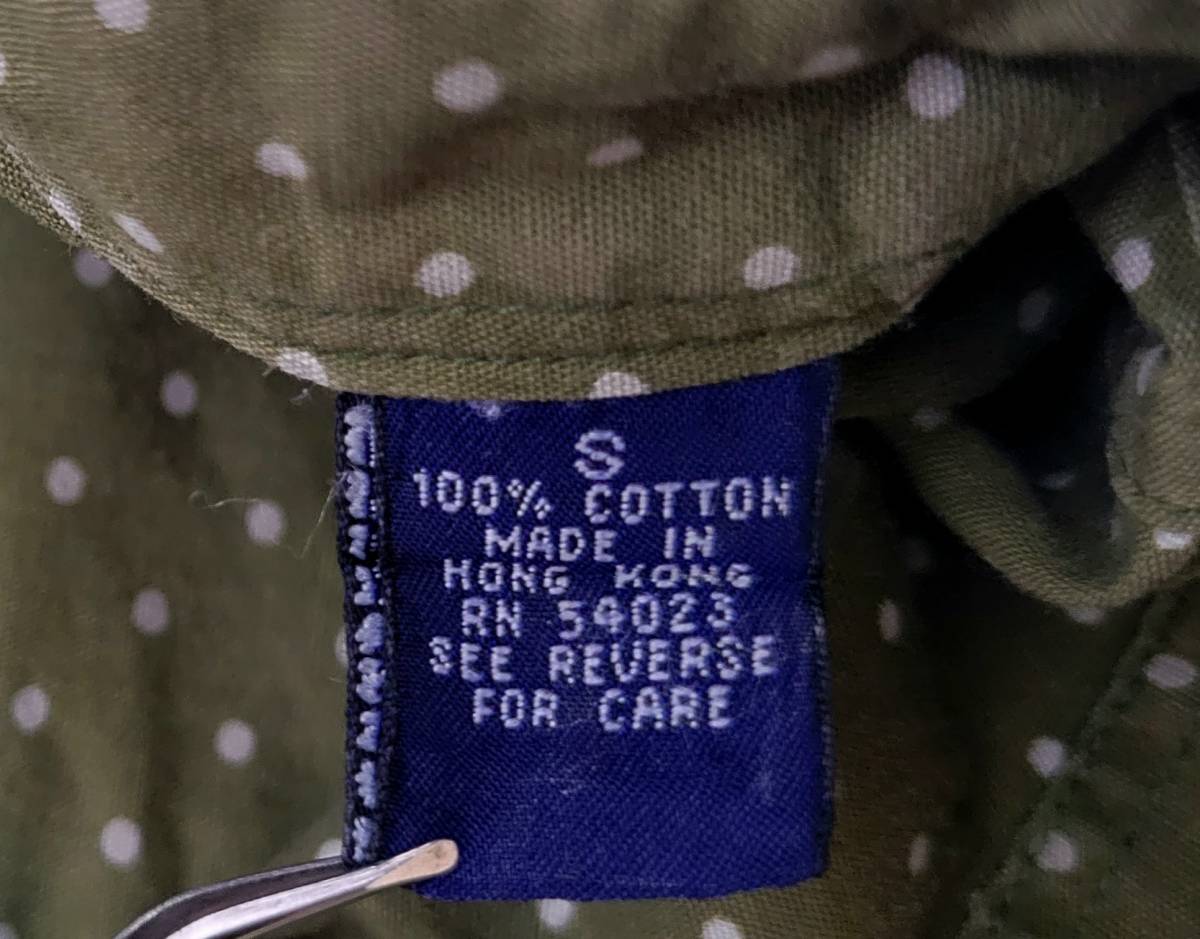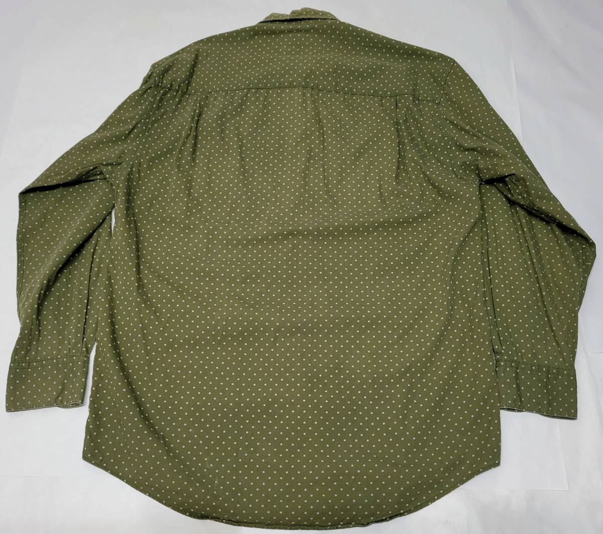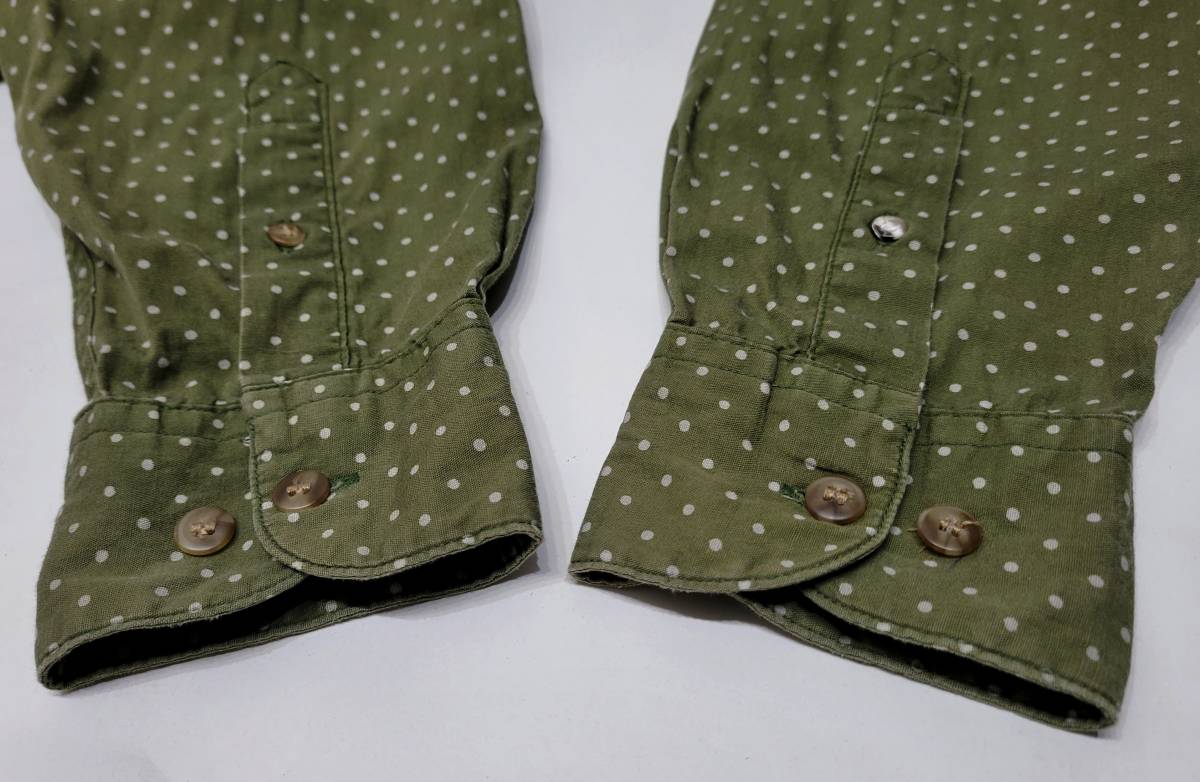 オリーブにライトグレーのドット柄が珍しい一着です、サイズ表記はSです。