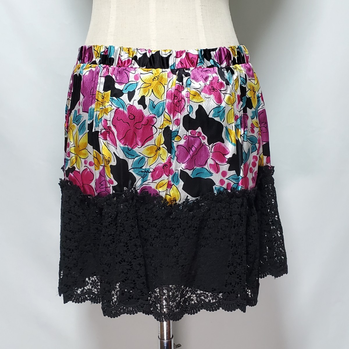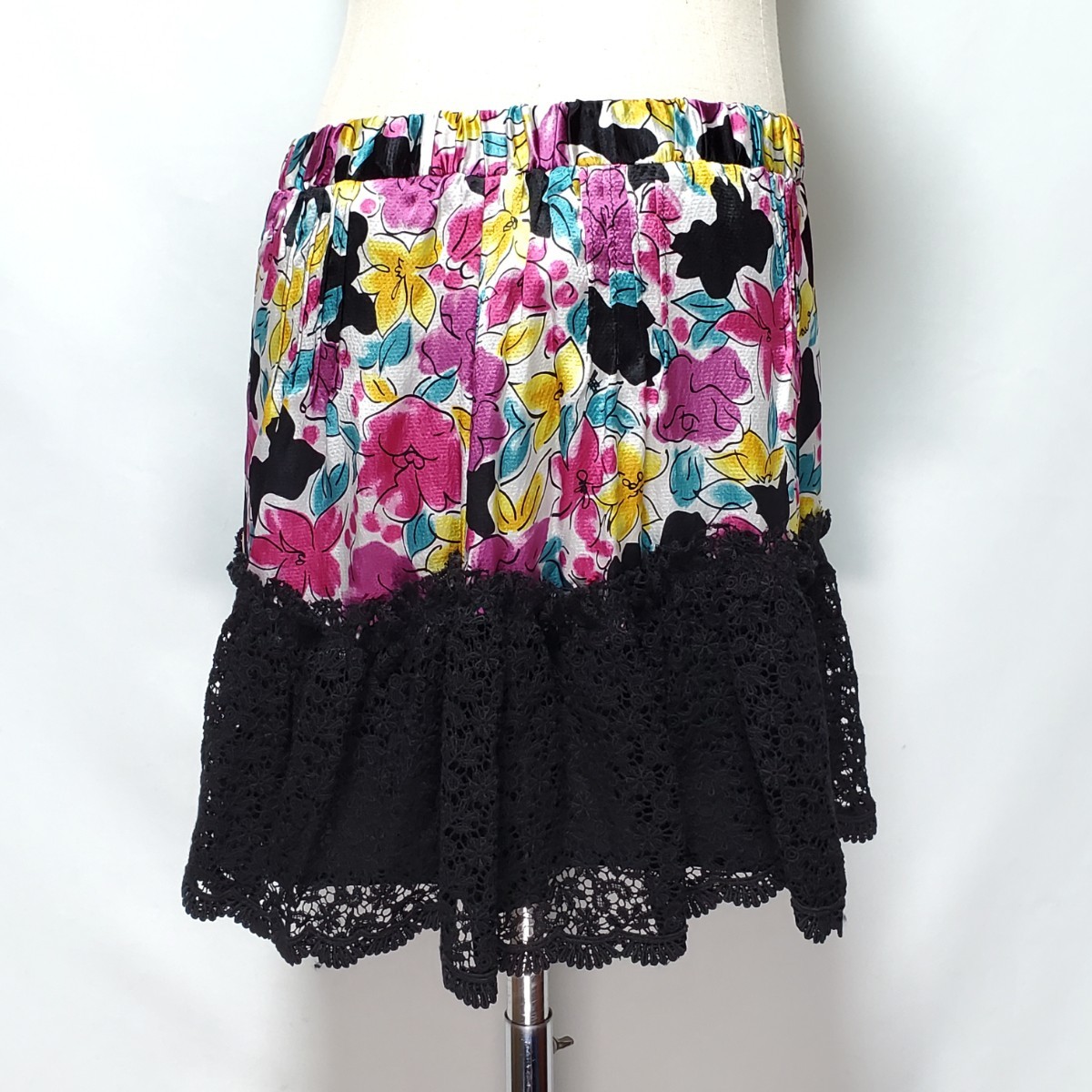 JILL STUART ジル スチュアート 花柄 レース スカート ウエストゴム サイズ4 (約XLサイズ相当) 表地シルク タグ付き未使用 | |||