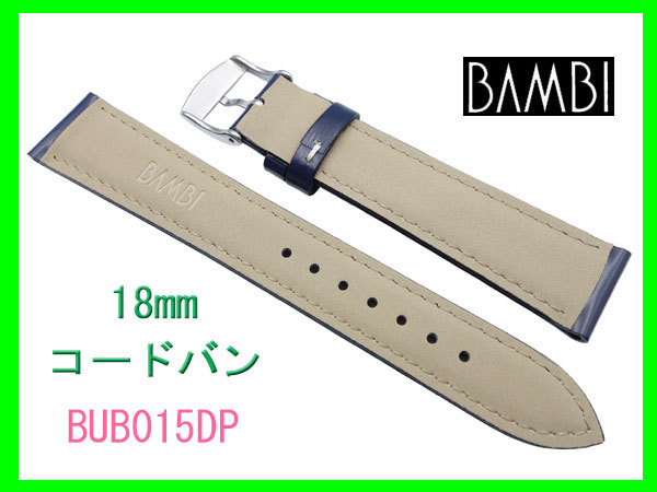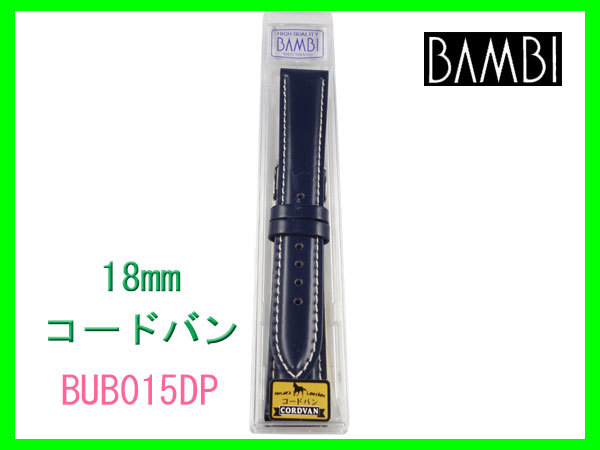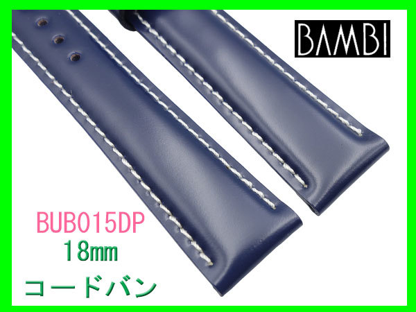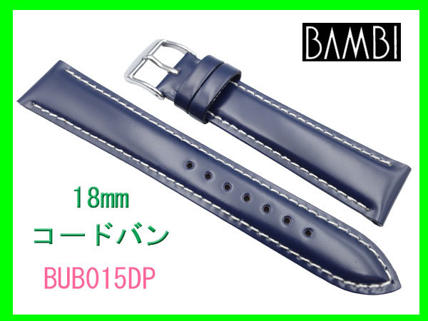 18mm バンビ 時計ベルト コードバン ネイビー 白ステッチ BUE015DP 腕時計 ベルト 新品 未使用 正規品