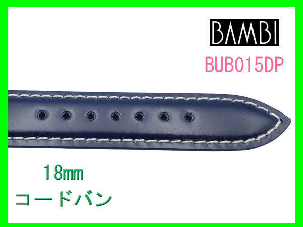 18mm バンビ 時計ベルト コードバン ネイビー 白ステッチ BUB015DP