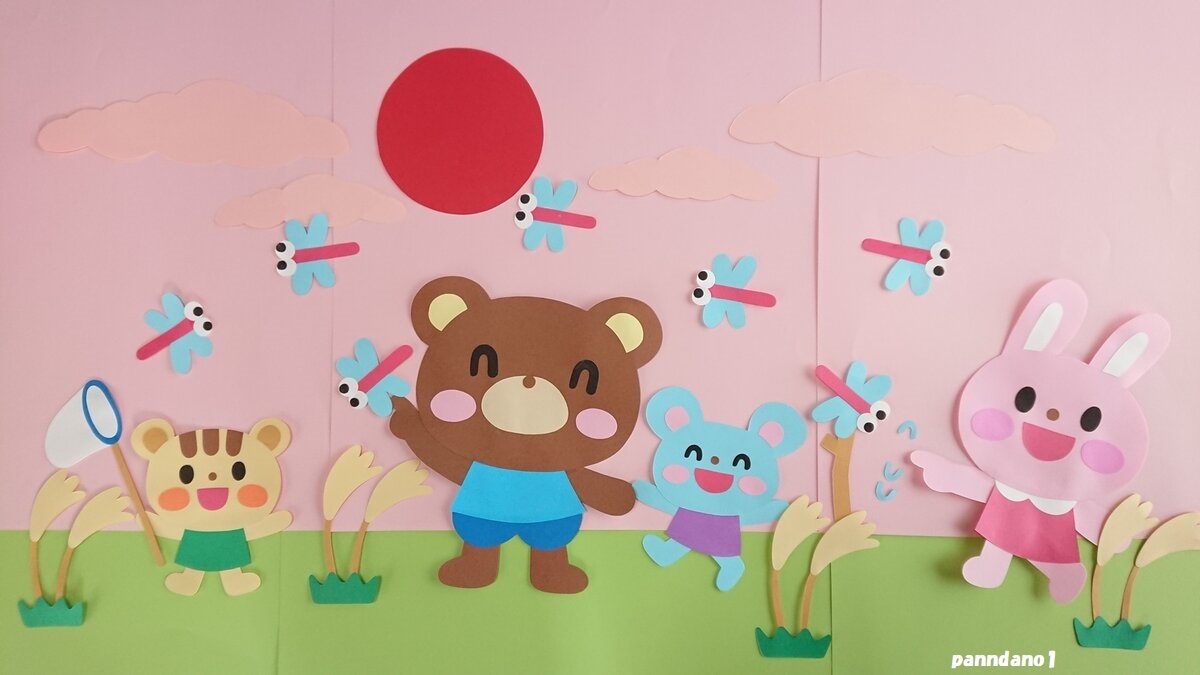☆ハンドメイド☆ 【壁面飾り】秋 『この指と~まれっ♪』とんぼ&すすき♪ 幼稚園 保育園 施設 病院 掲示板
