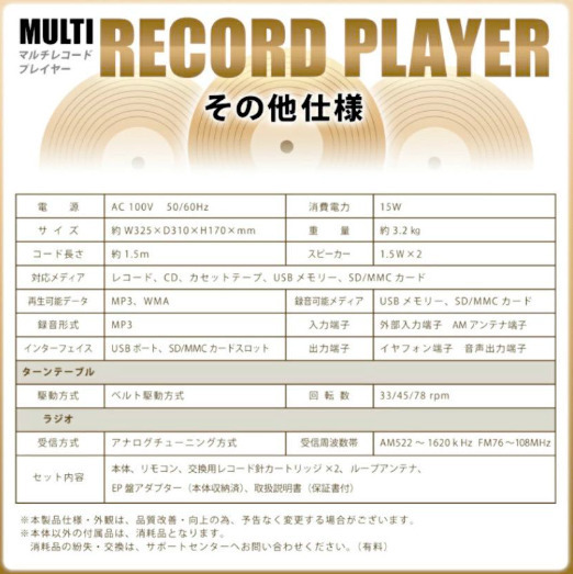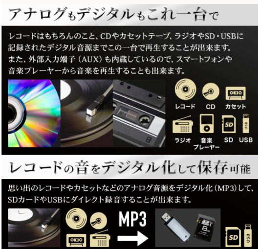 対応メディア:レコード、CD、カセットテープ、USBメモリー、SD/MMCカード