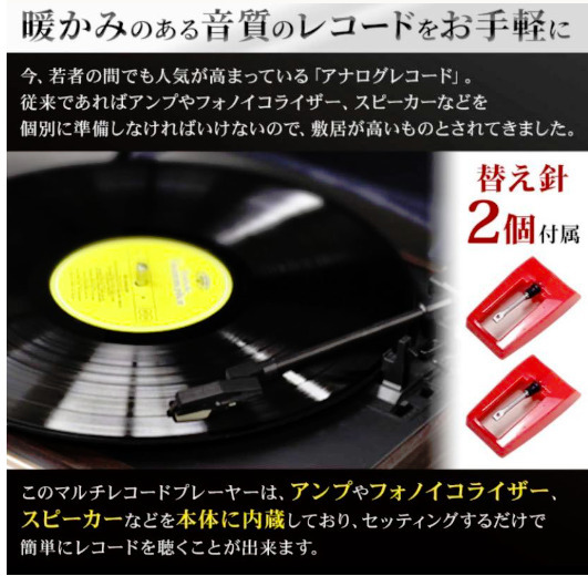 マルチレコードプレーヤー レコード録音 CD録音 ラジオ カセットテープ CD カセット