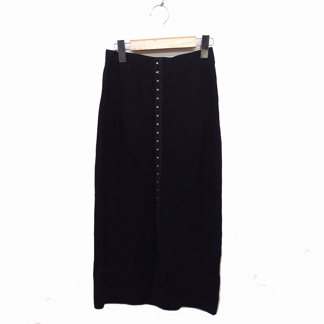 ローズバッド ROSE BUD ニット トラペーズ スカート ロング ミモレ丈 ホック F ブラック 黒 /FT33 レディース