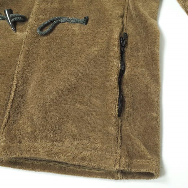 非常に肌触りの心地良いパイル素材で仕上げたダッフルコート。