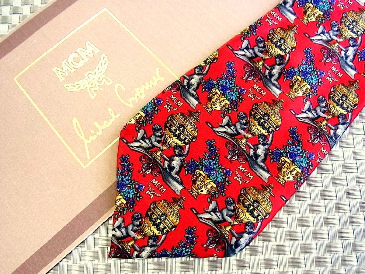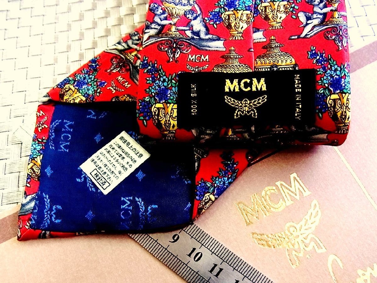 ♪30656C♪良品【天使 彫刻 花瓶 花 植物 総ロゴ 柄】エムシーエム【MCM】ネクタイ