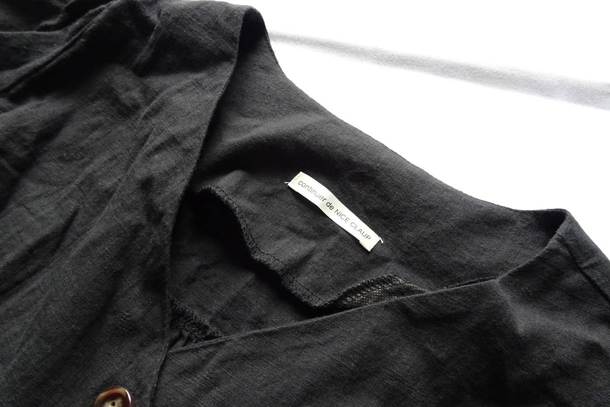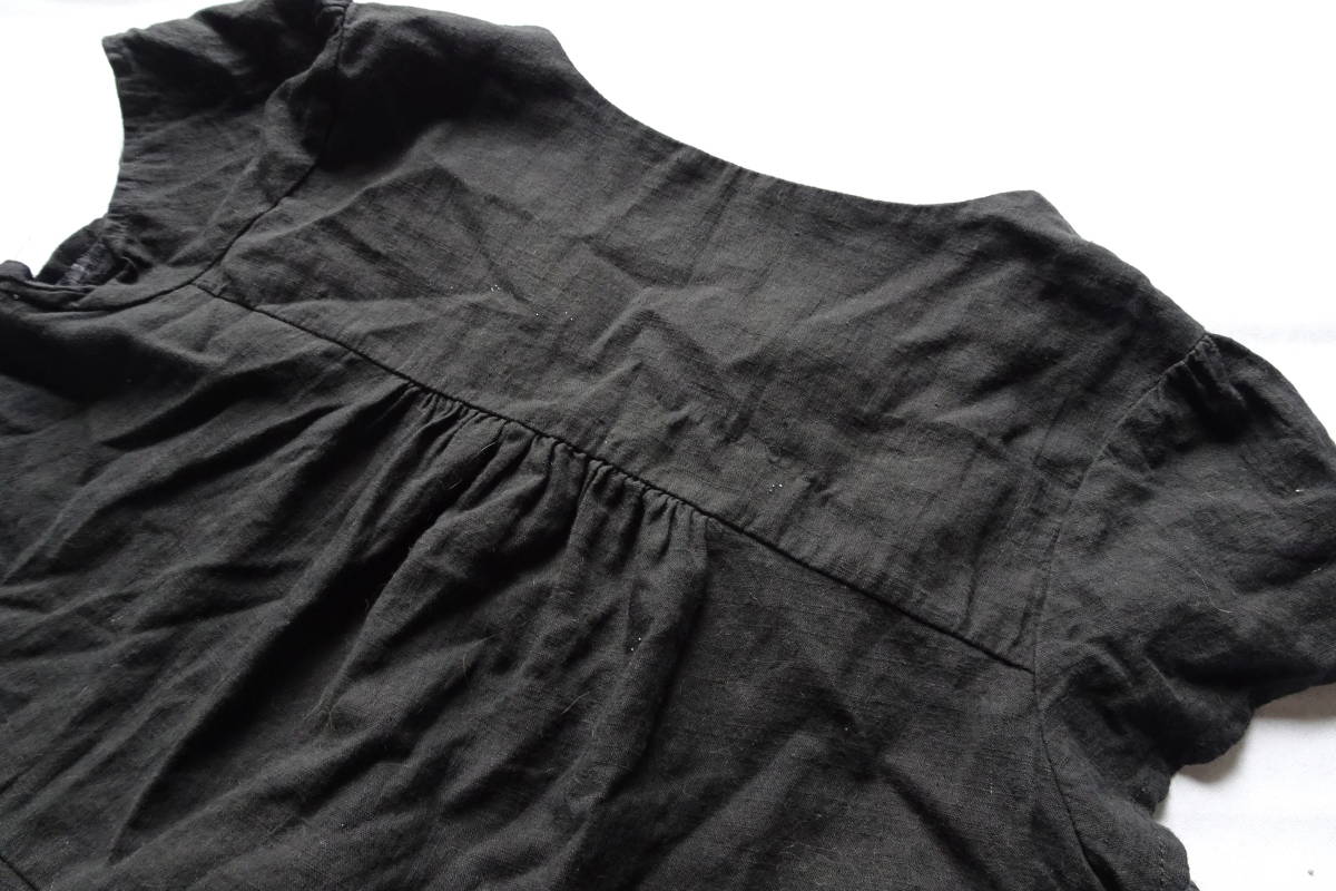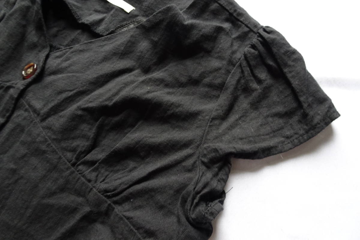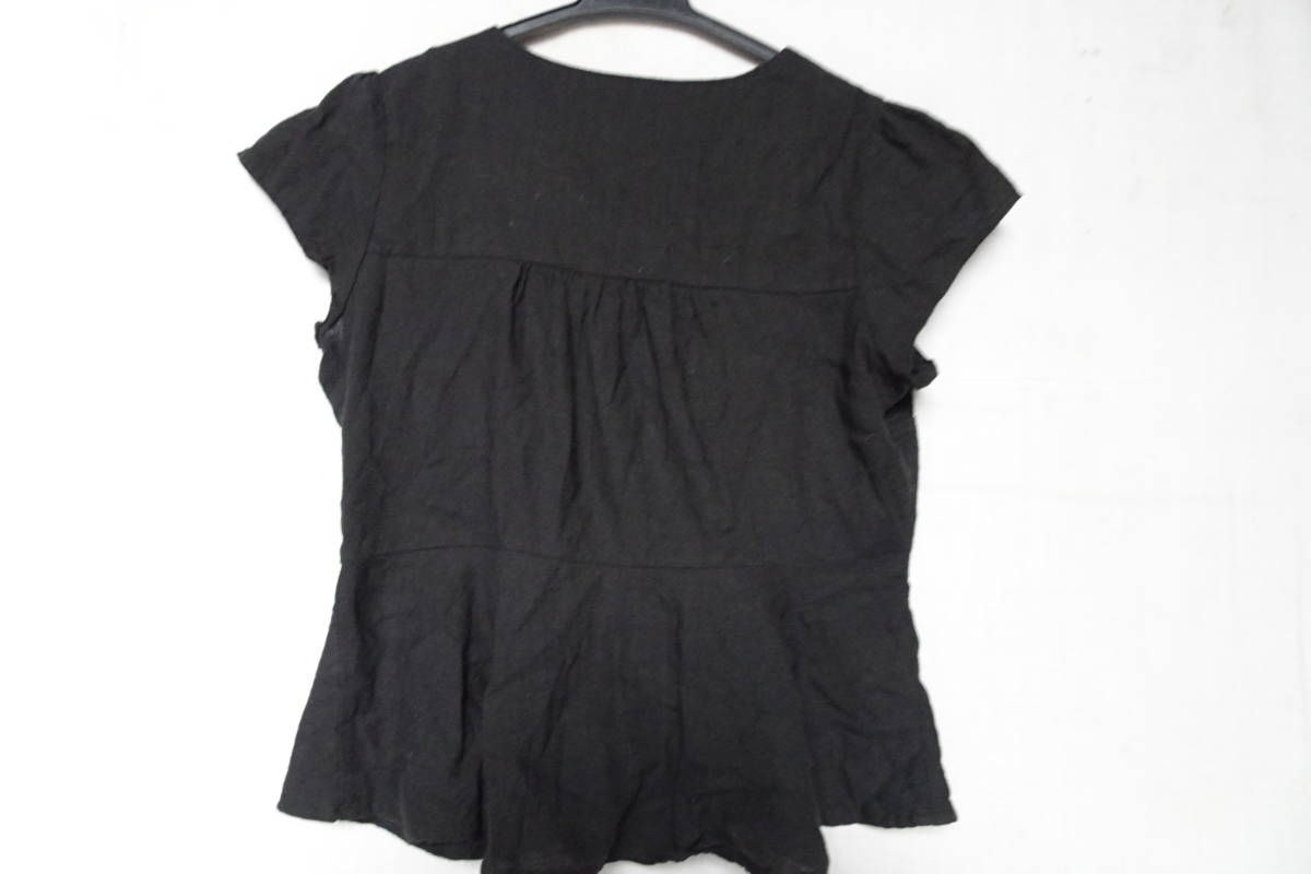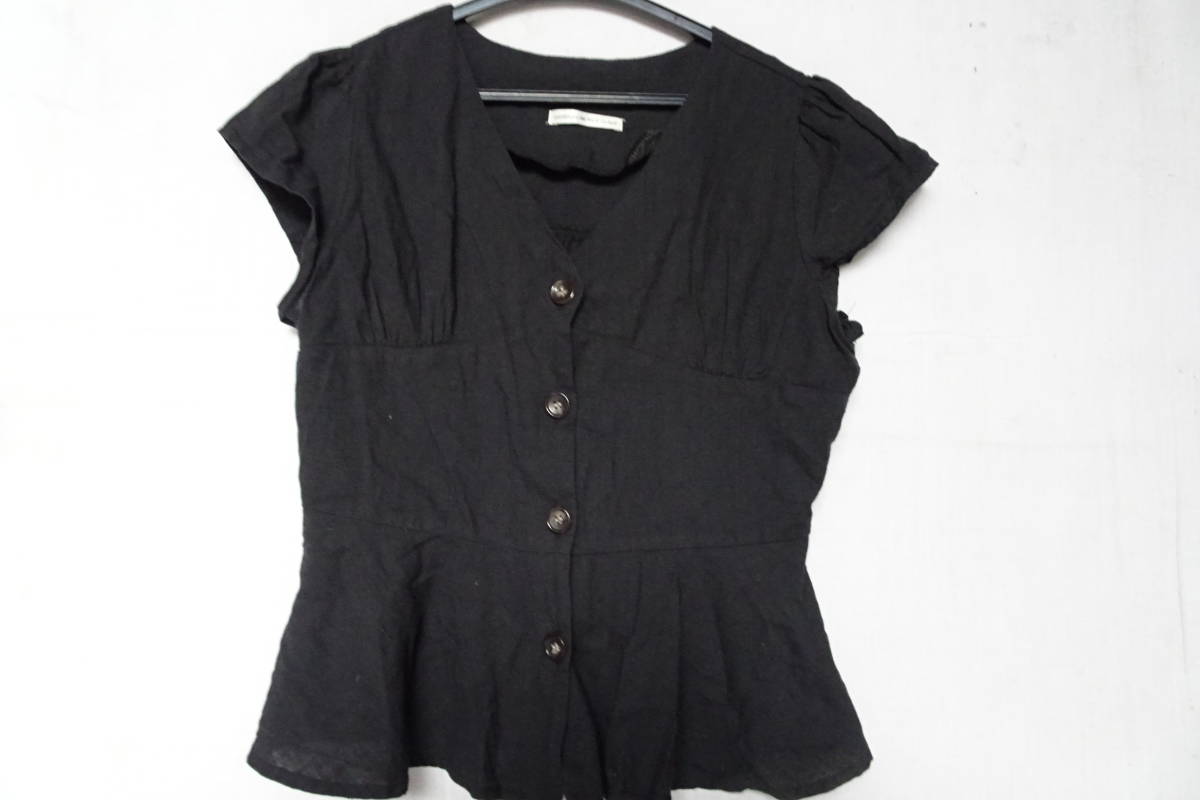 continuer de NICE CLAUP/ナイスクラップ/半袖ブラウス/ノーカラー/Vネック/フレンチスリーブ/裾ペプラム/黒/ブラック/Fサイズ(7/13R5)