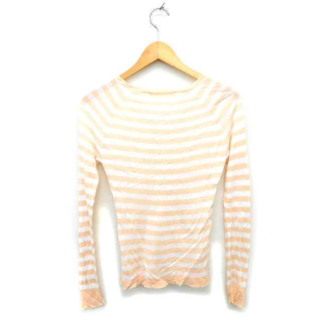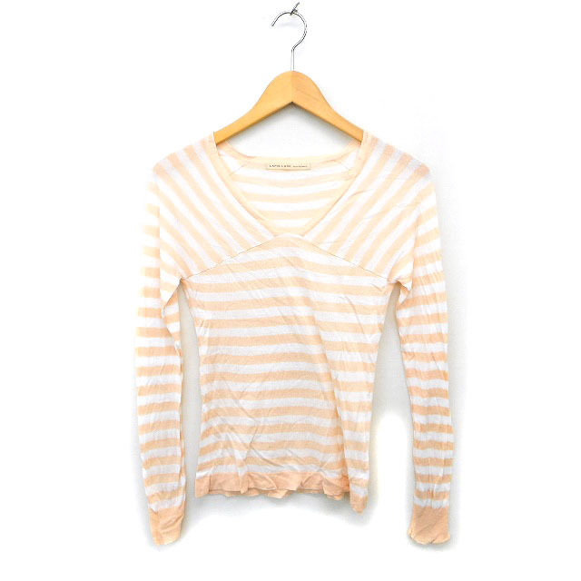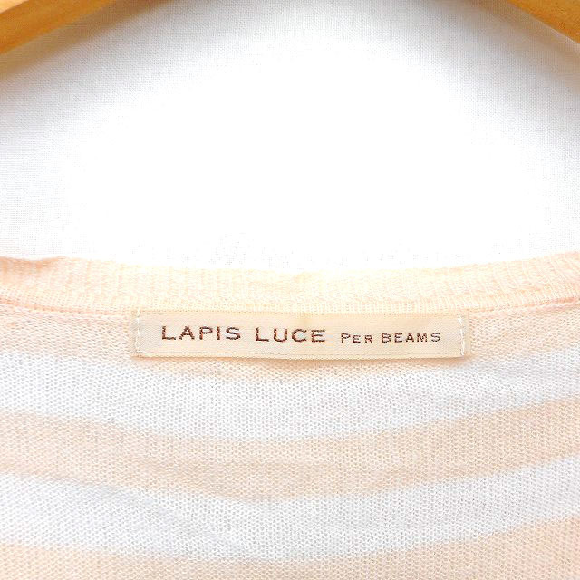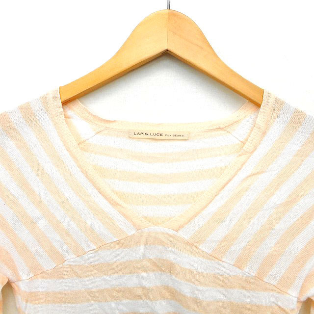 ラピスルーチェパービームス LAPIS LUCE PER BEAMS ニット セーター Vネック ラグランスリーブ 透け感 リブ ボーダー 長袖 ベージュ