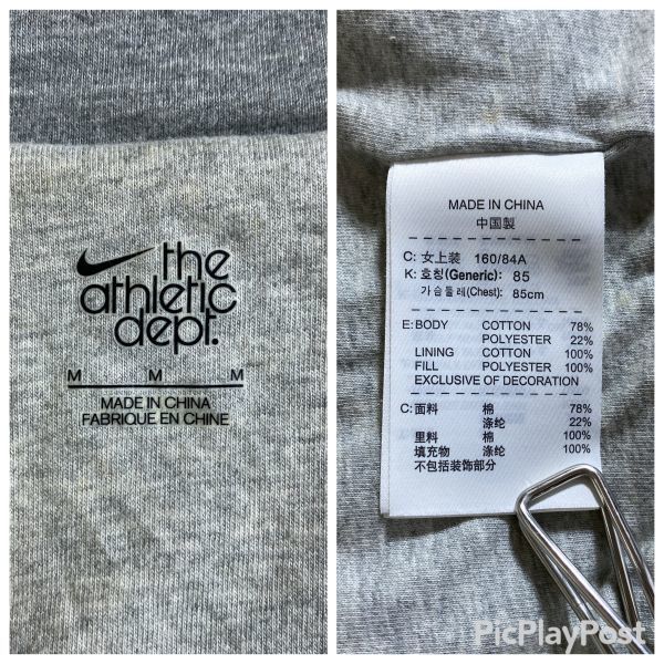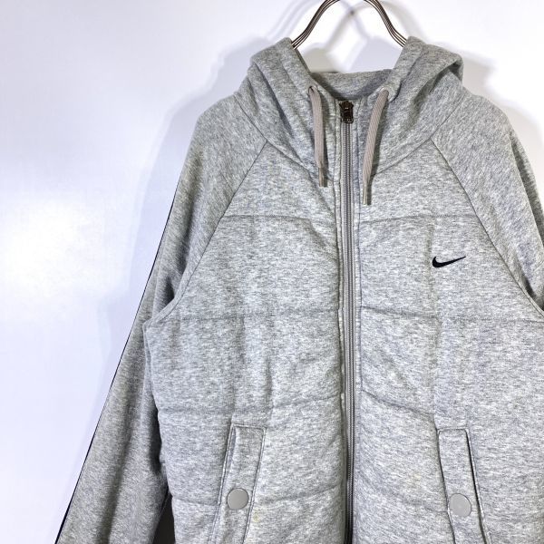 NIKE the athletic dept. ナイキ アスレチック デプト 中綿入り パーカー スウォッシュ ロゴ刺繍 ブルゾン グレー Mサイズ 匿名配送