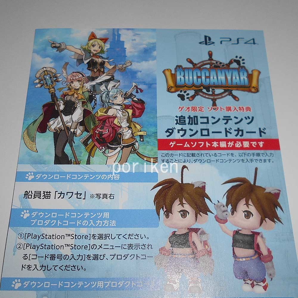 PS4版「バッカニヤ」の、GEO特典プロダクトコードです。