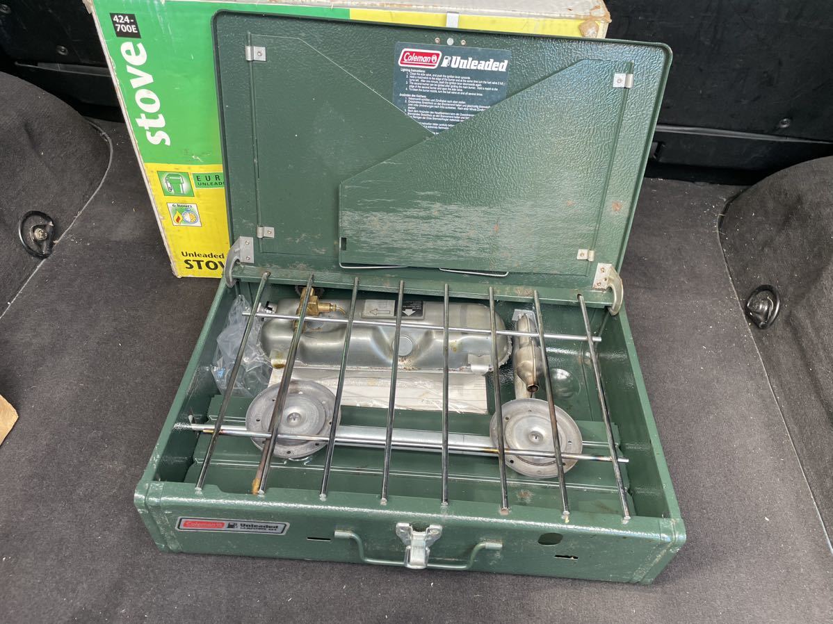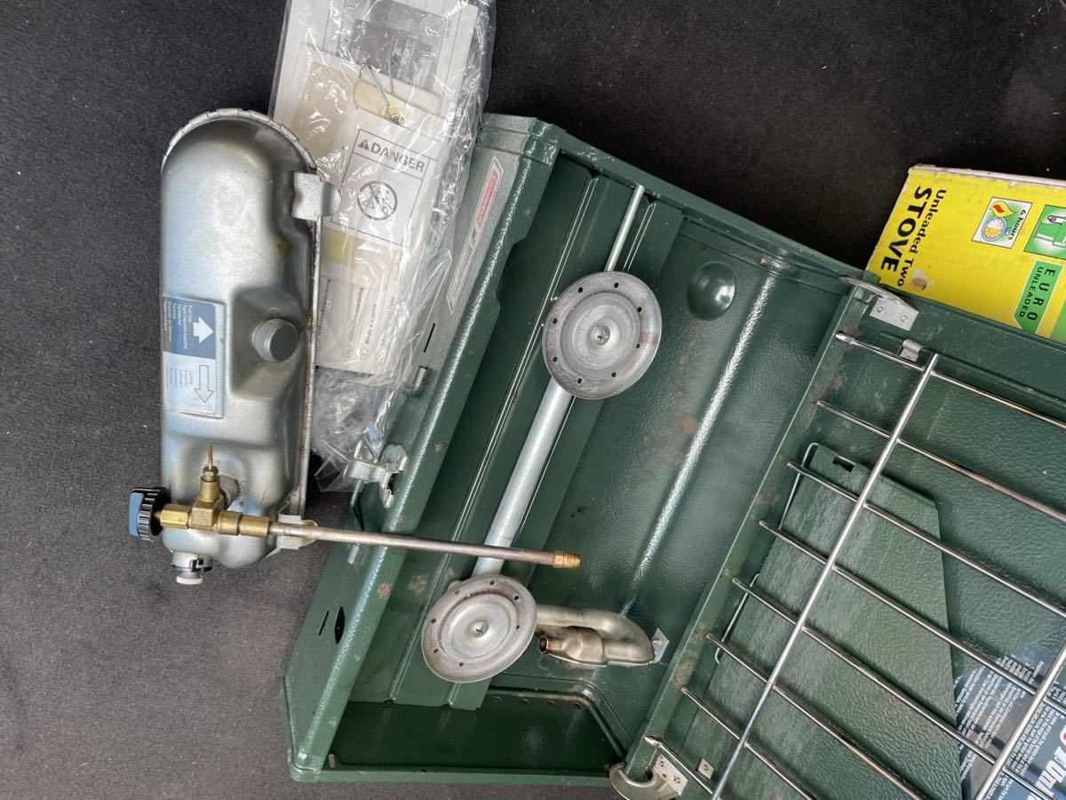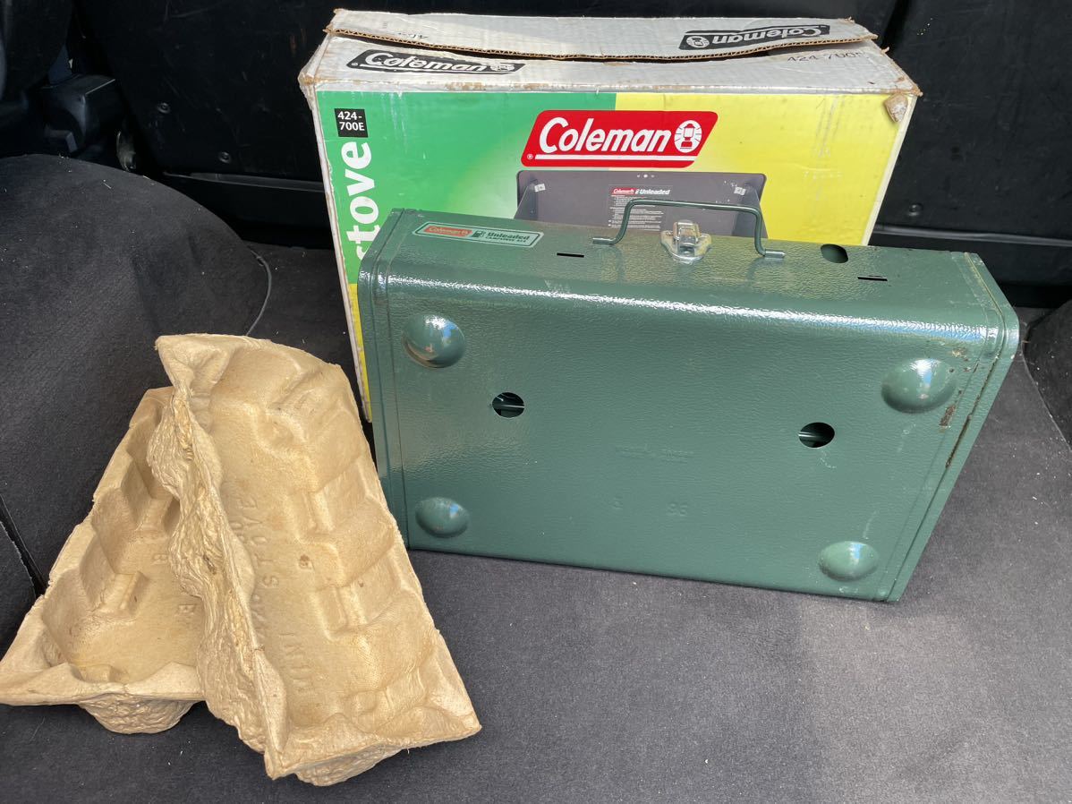 ◆Coleman コールマン 424 700E◆小ぶりなツーバーナー 1996年3月 美品 元箱/解説冊子付き Unleadedレギュラーガソリン可 災害対策