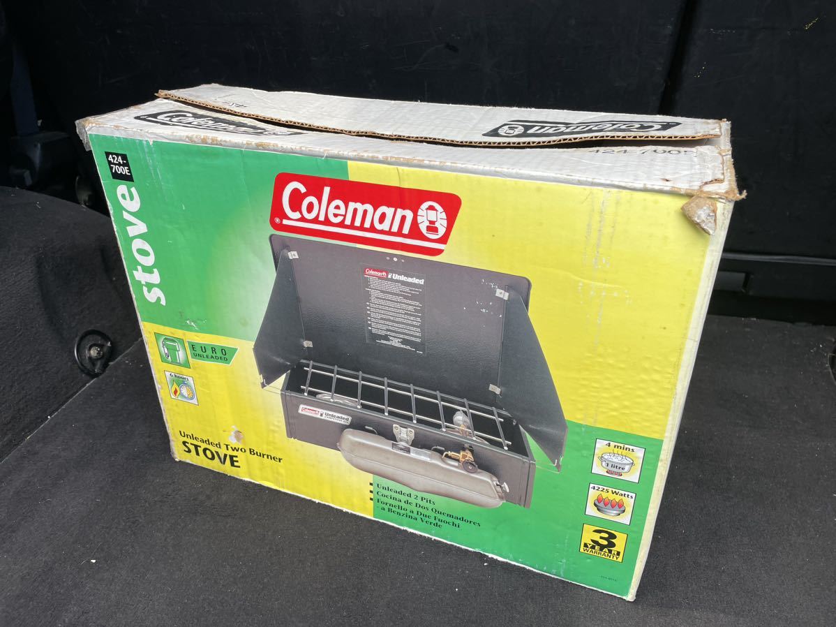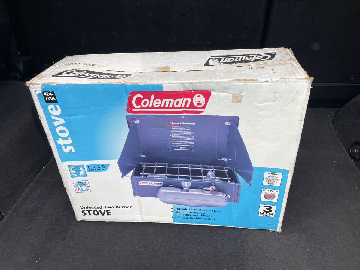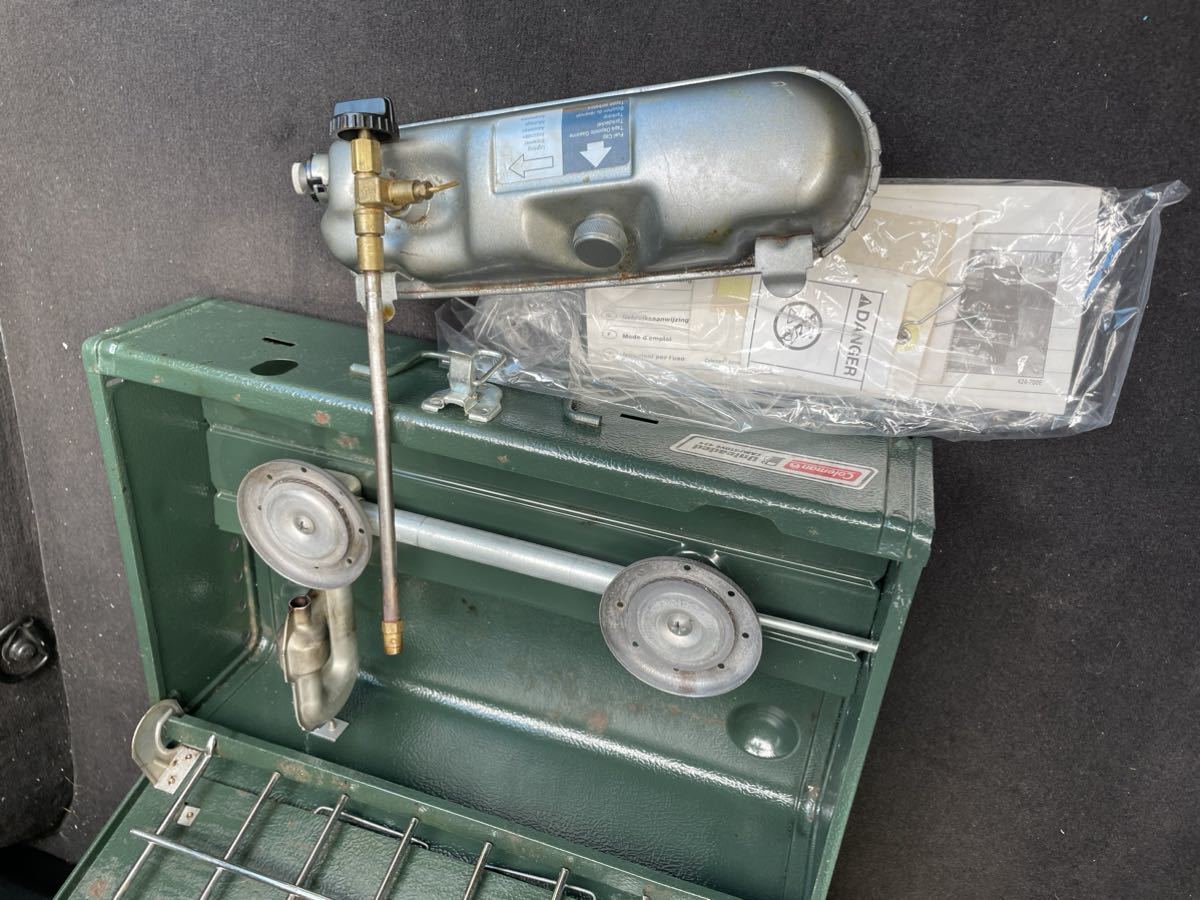 ◆Coleman コールマン 424 700E◆小ぶりなツーバーナー 1996年3月 美品 元箱/解説冊子付き Unleadedレギュラーガソリン可 災害対策