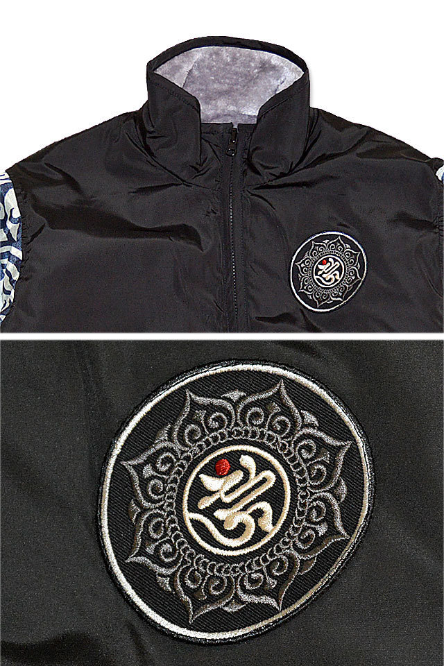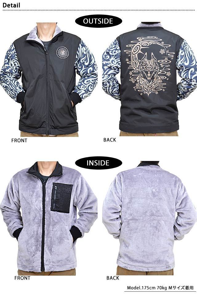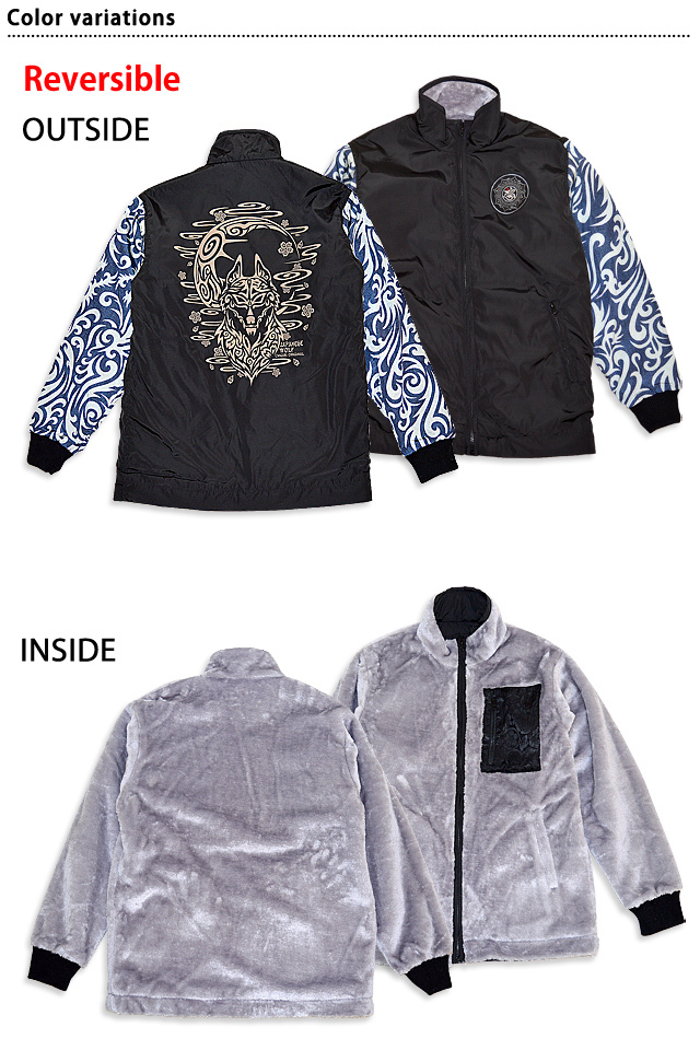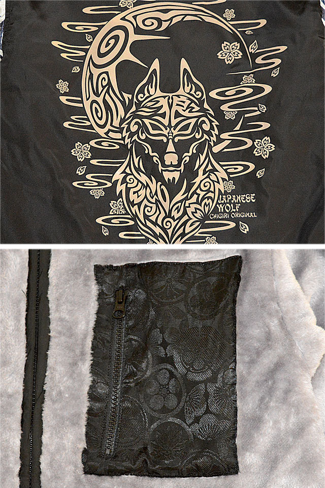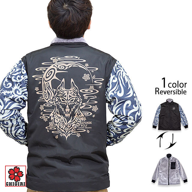 トライバル狼リバーシブルボアジャケット◆CHIGIRI ブラックLサイズ CHL43-1582 和柄 和風 オオカミ アウター ちぎり チギリ