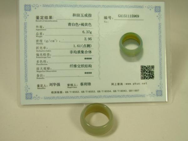 ▲商品説明▲ | 高11×厚3mm 重さ:6.4g 今は中国でも貴重な石、和田白玉(ホータンはくぎょく)製の広幅指輪。飾り彫りのないシンプルなデザインですが一塊の石から作り出された贅沢な逸品です。 ●中国の西部砂漠地域(新彊、甘粛)の河床(今は水が無い所)から出る玉(ぎょく)は、中国では和田(ホータン)白玉と呼ばれ、何千年も前から珍重されています。翡翠の照りとは違い、ねっとりとした潤いがあります。中国の玉(ぎょく)コレクター垂涎の石です。 ◎北京大学宝石鑑定センターの鑑定証付き。 |
