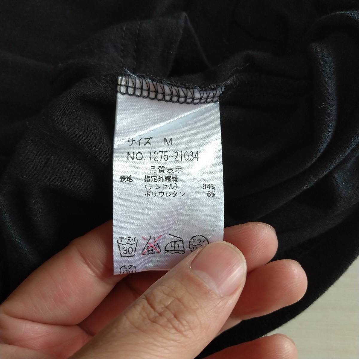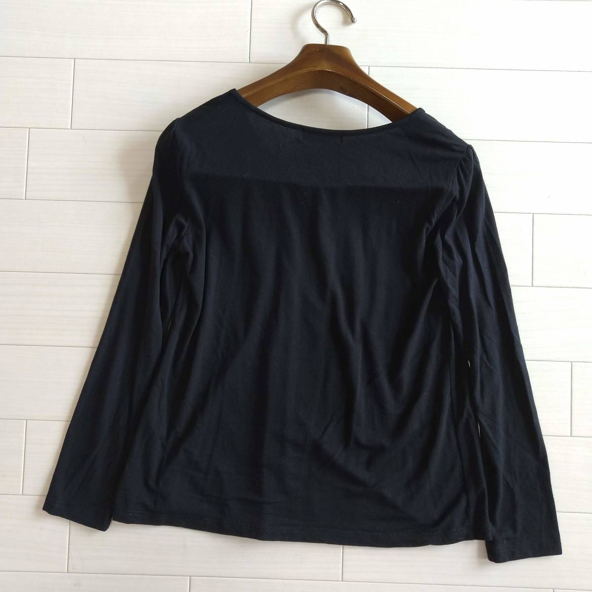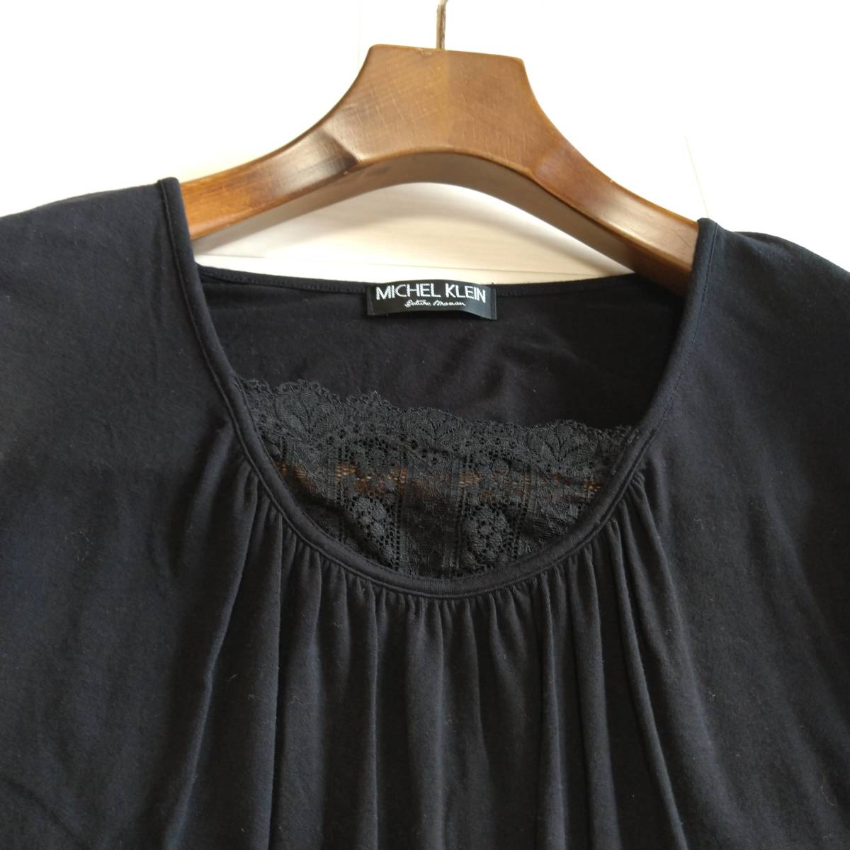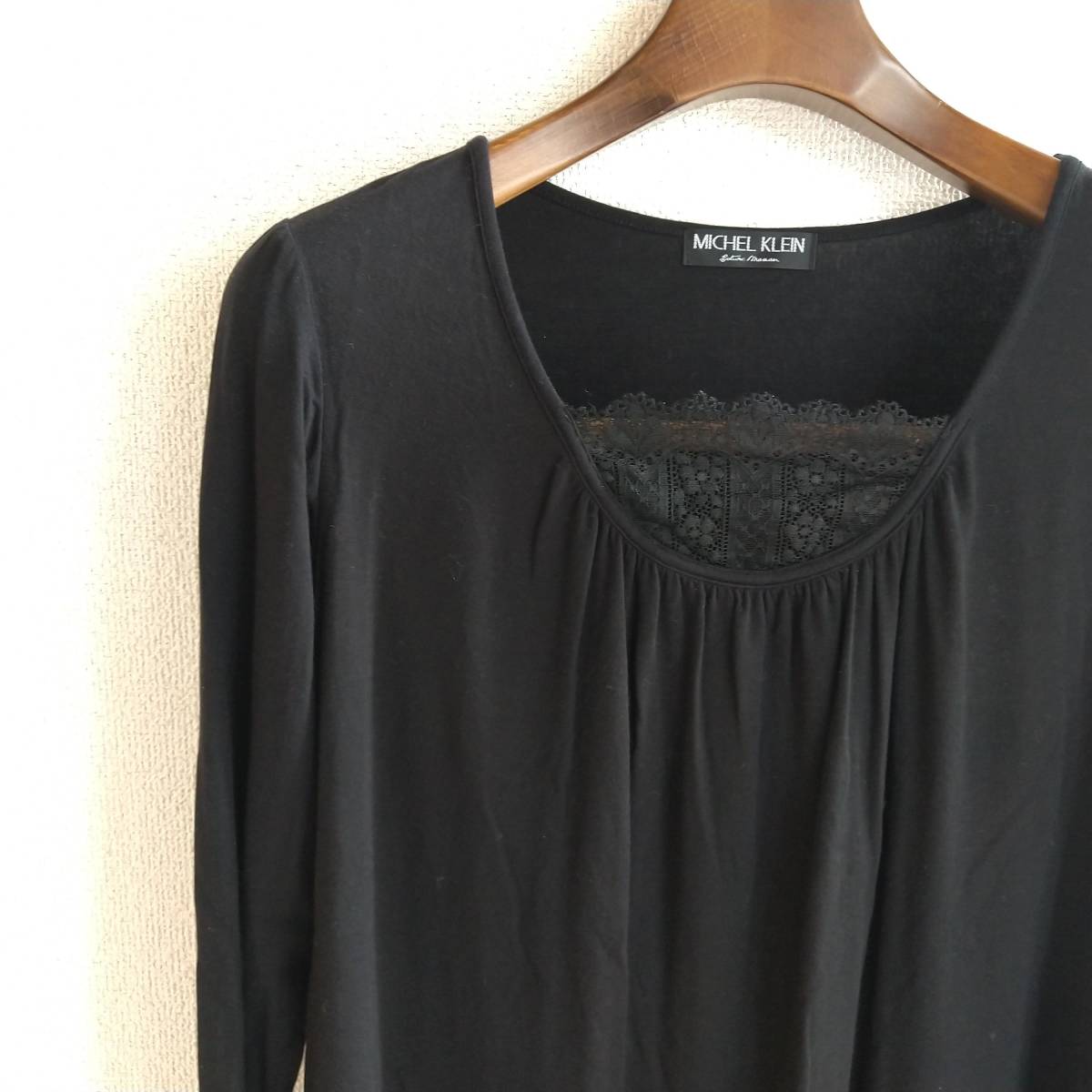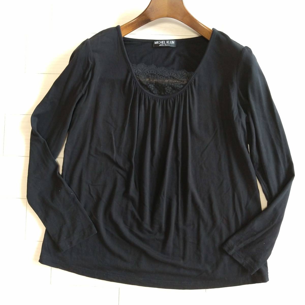 MICHEL KLEIN ミッシェルクラン Tシャツ ラウンドネック レース 無地 プルオーバー トップス 長袖 レディース サイズM ブラック aa494
