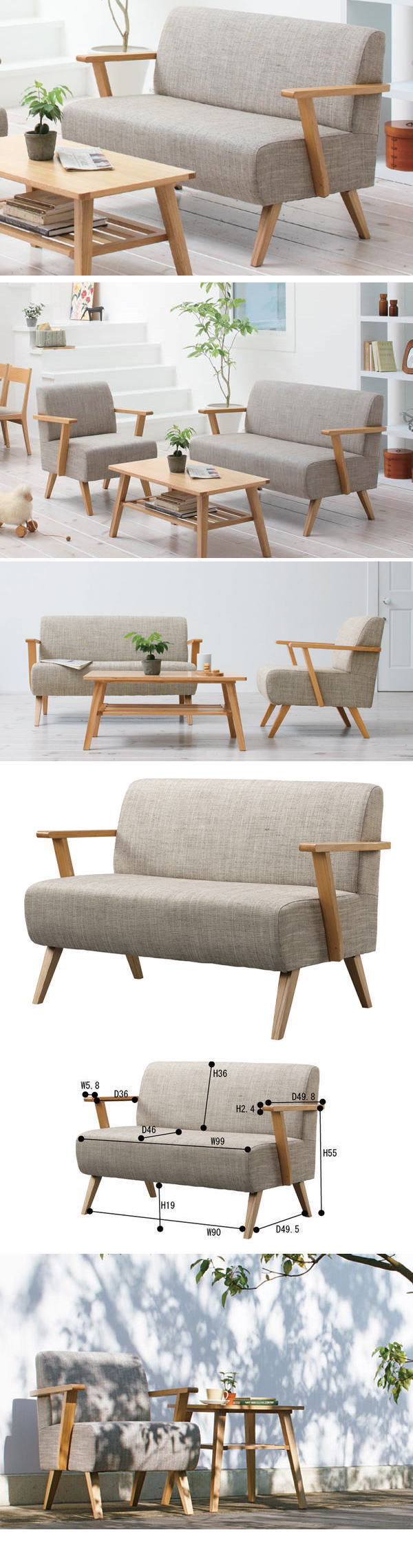 | ◆ 商品名 | アッシュ材×ファブリック 北欧調 2人掛けソファー |