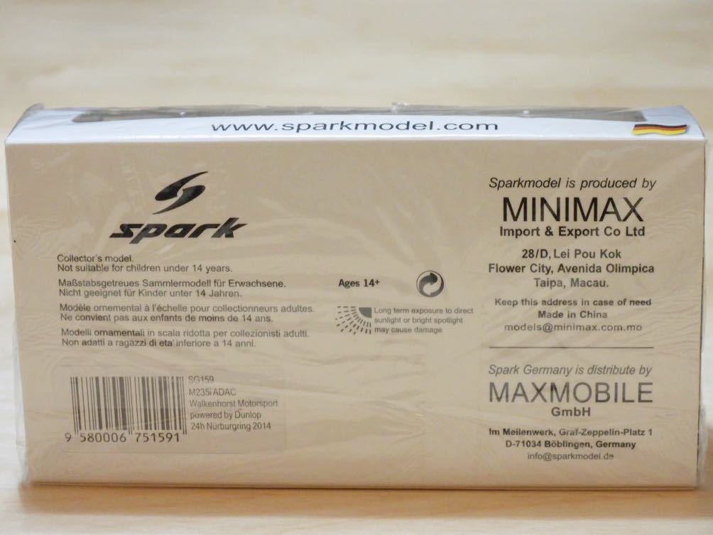 Spark スパーク 1/43 BMW M235i ワーケンホースト モータースポーツ ニュルブルクリンク24時間 ニュル24時間