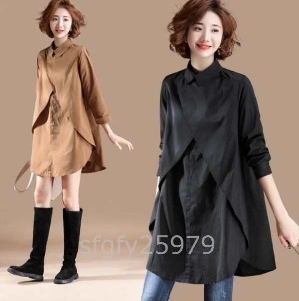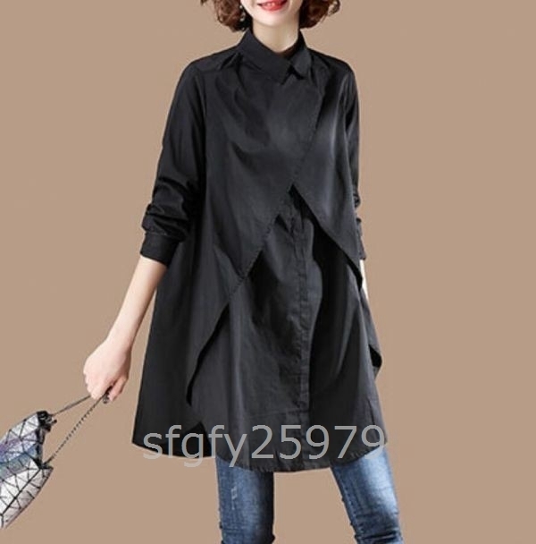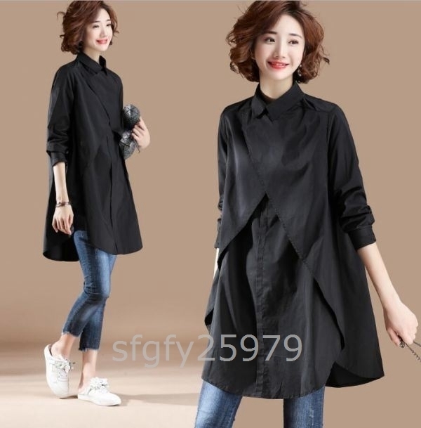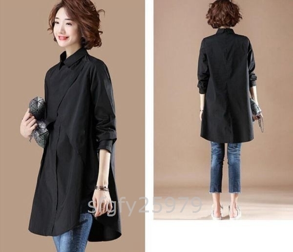 C090☆Mサイズ 人気商品 超人気☆ 大きいサイズ 長袖 チュニック カジュアル ゆったり 素敵な 無地 コットン ☆ 黒