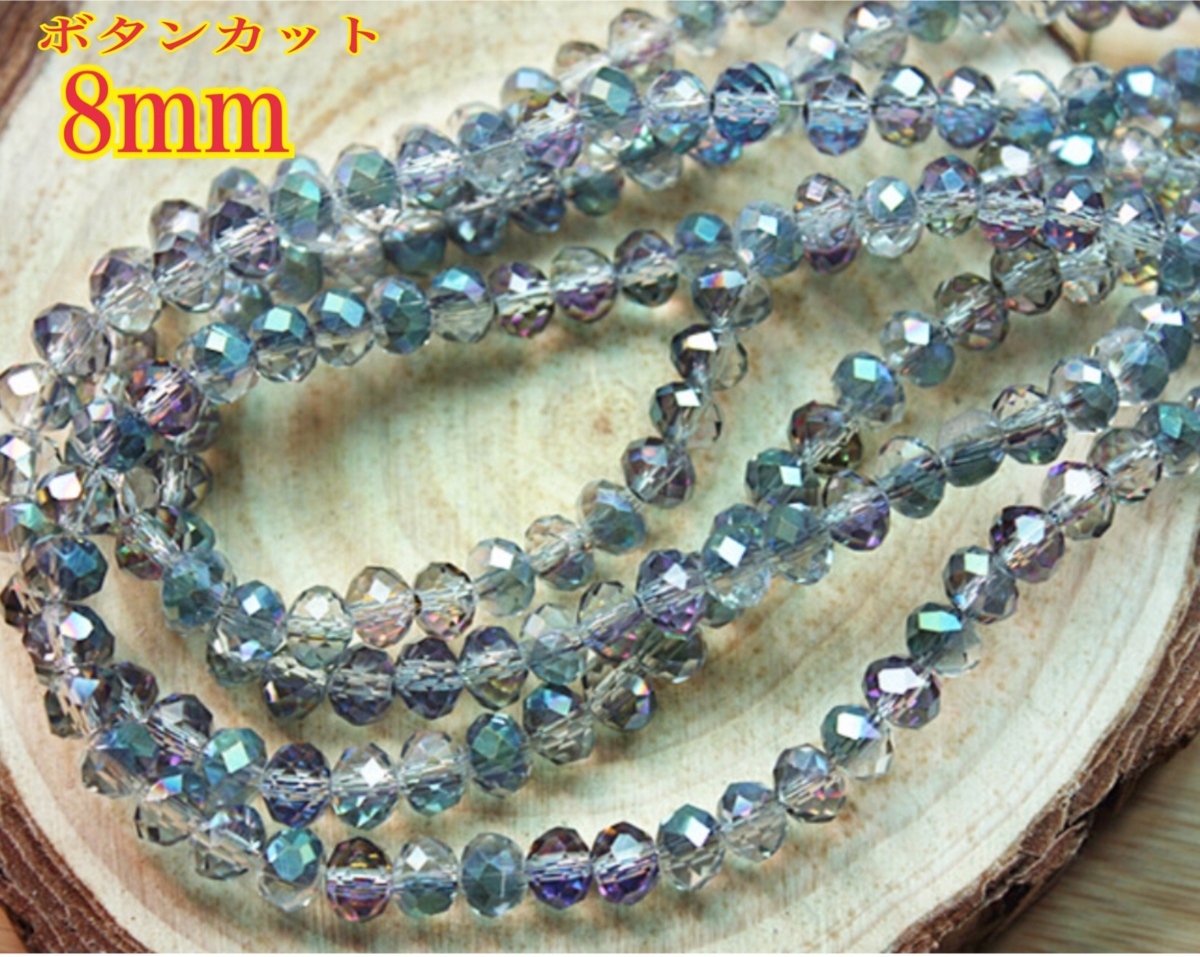 2本組 8mm ボタンカットビーズ クリスタル ガラス ハンドメイドパーツ キラキラ輝く