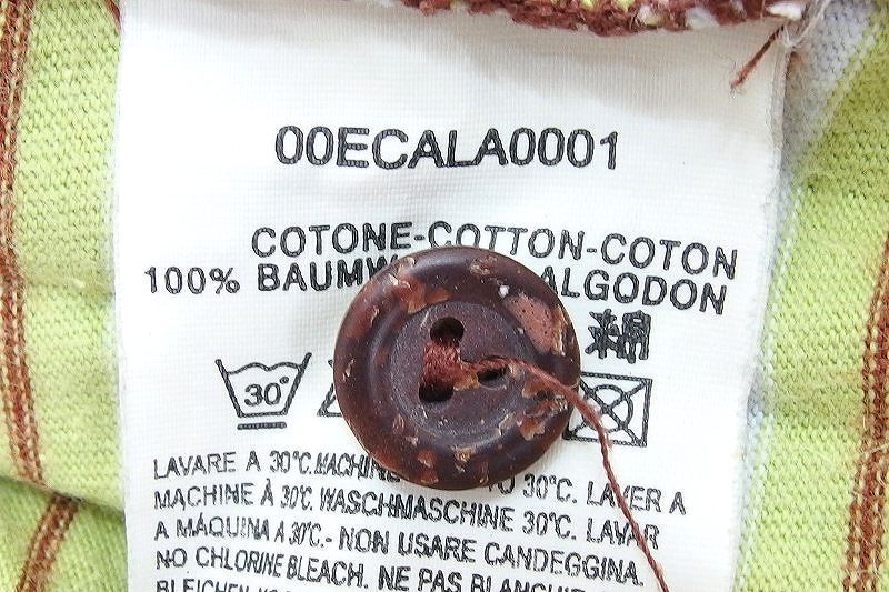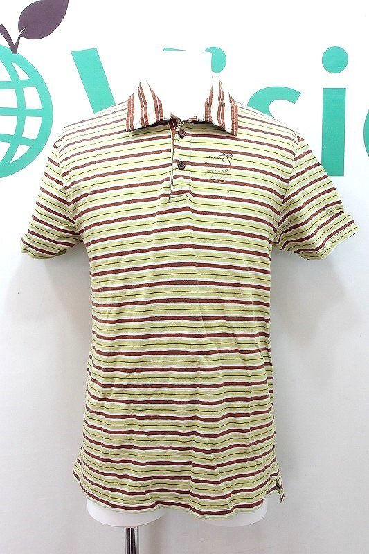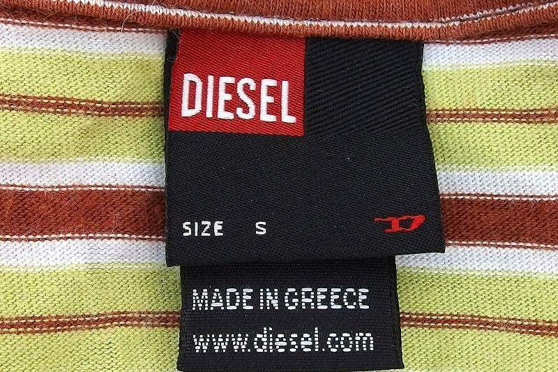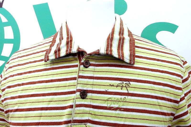 DIESEL ディーゼル ボーダー 半袖シャツ メンズ S ライトグリーン×ブラウン