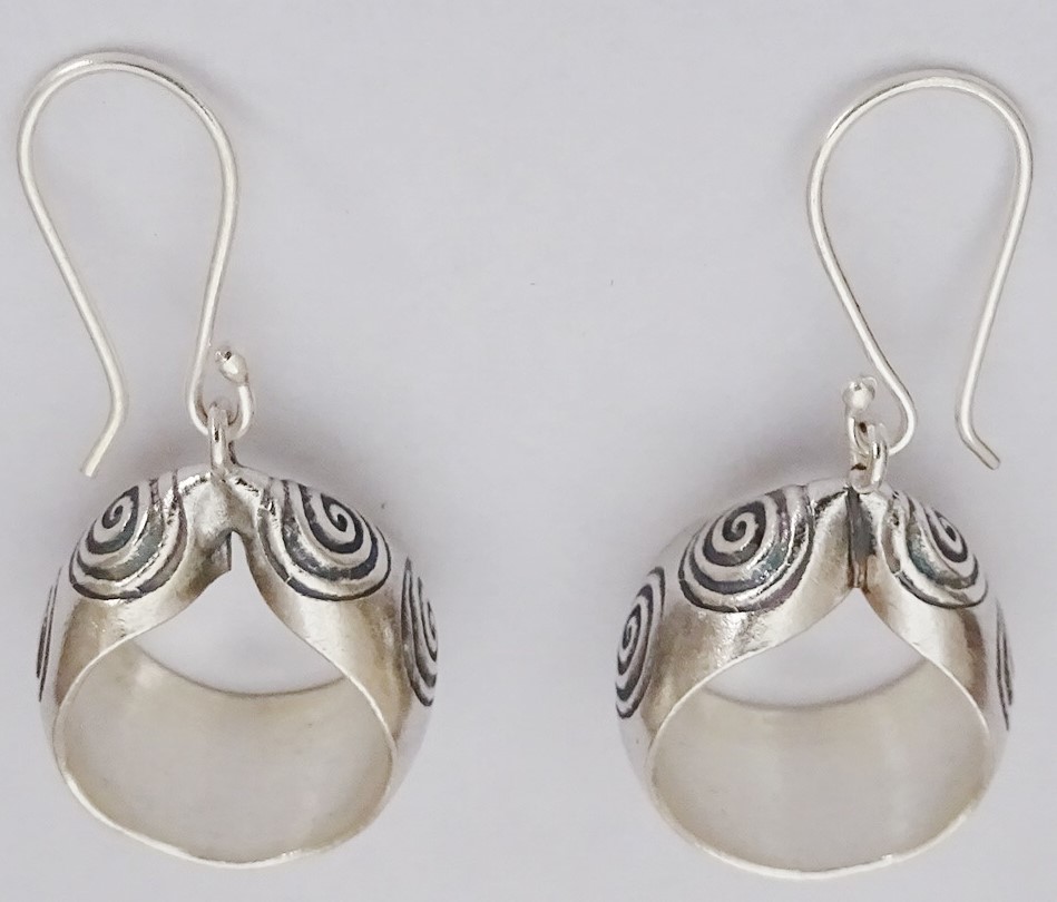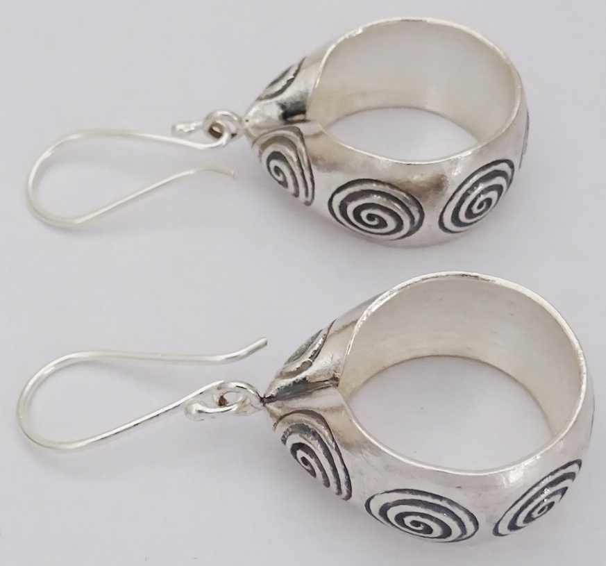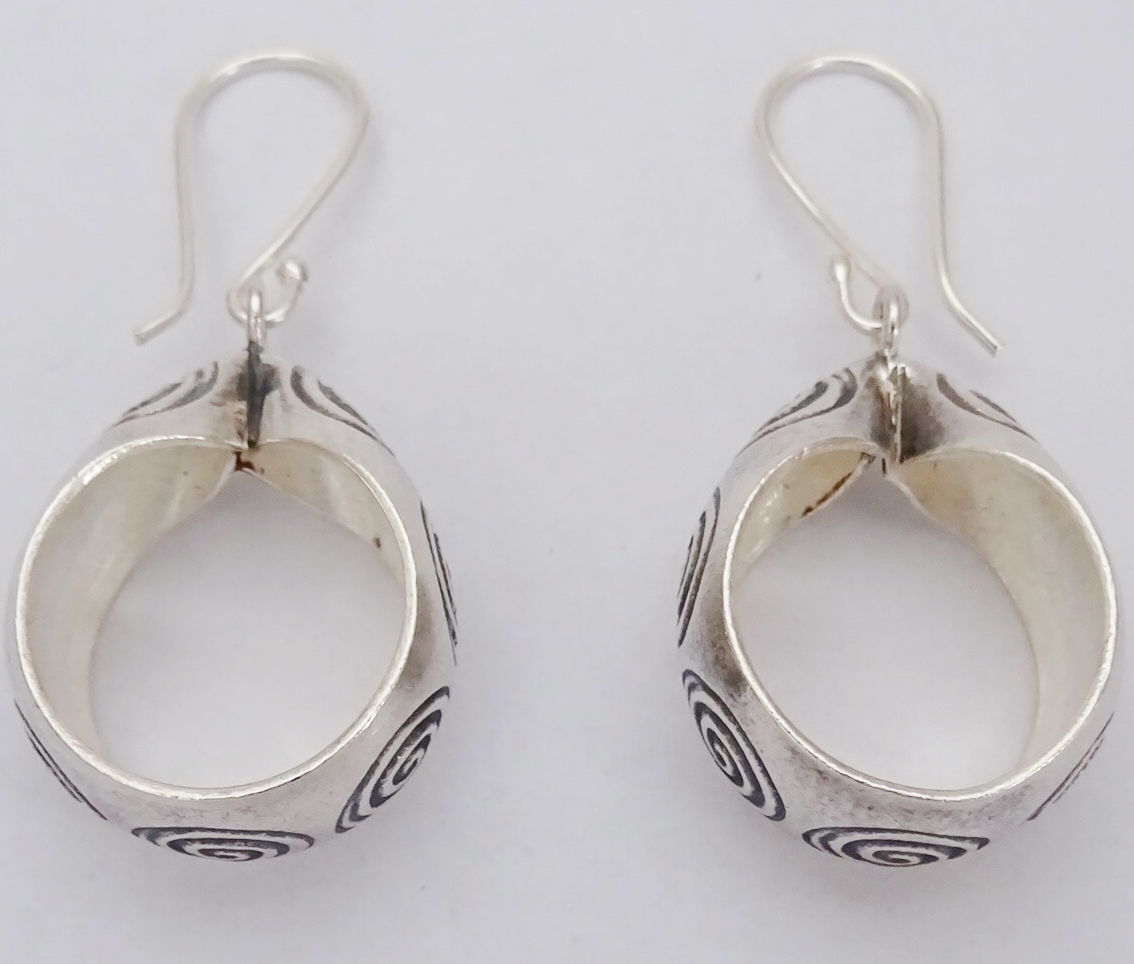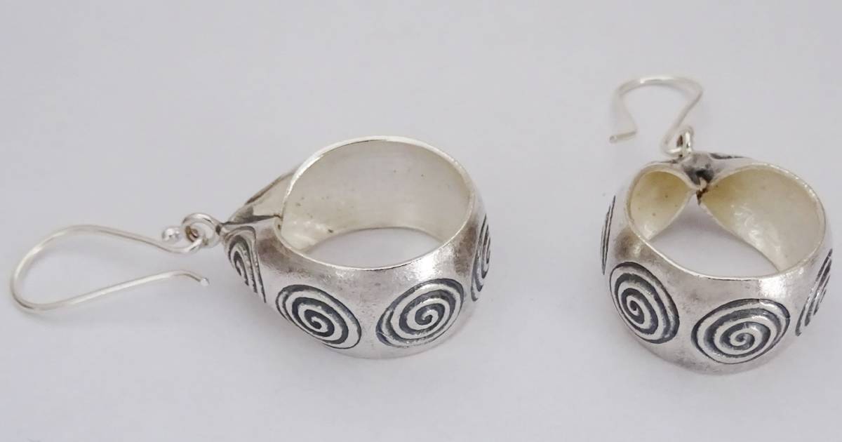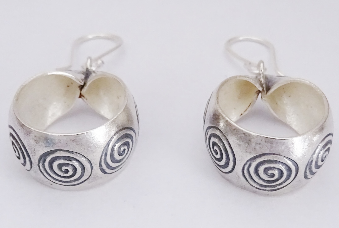 ◆カレンシルバー ピアス 渦巻き【19np01】◆リング型・刻印◆カレン族・山岳民族・少数民族◆検/唐草・アラベスク・アニミズム |