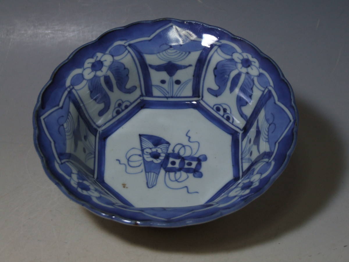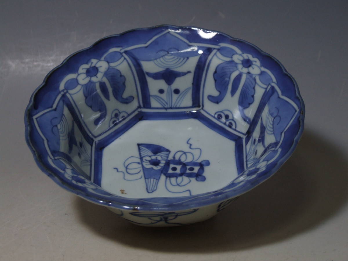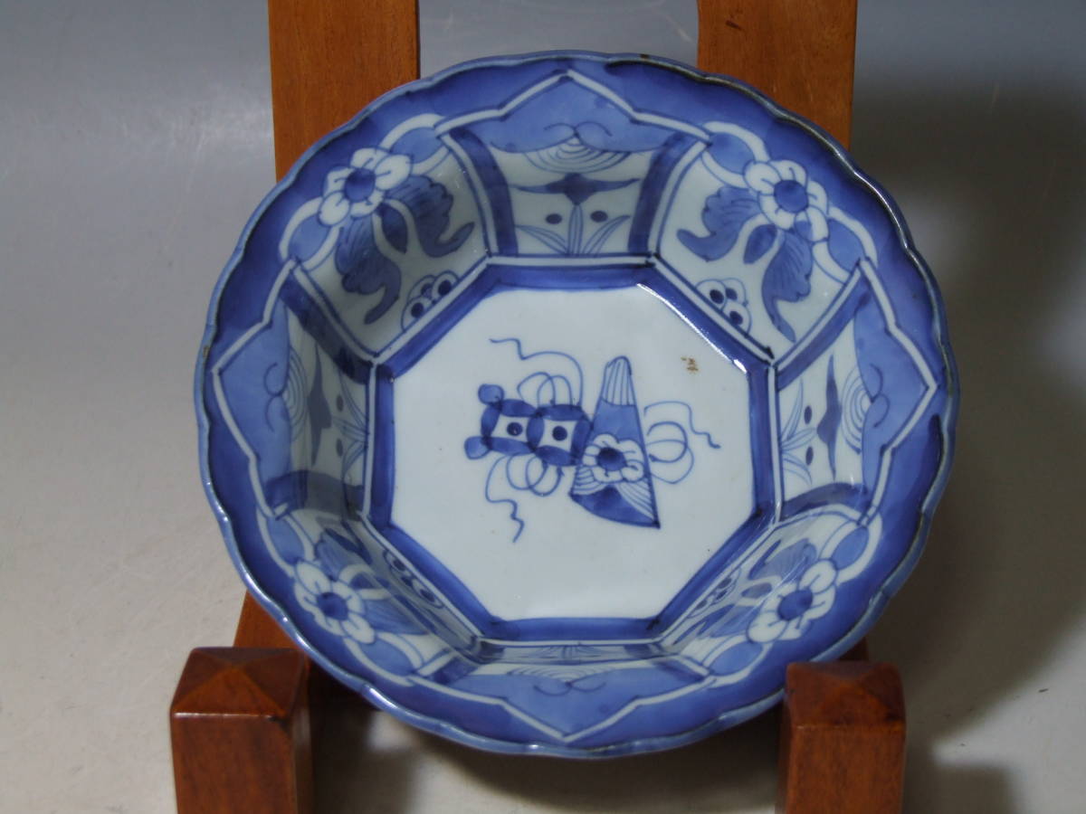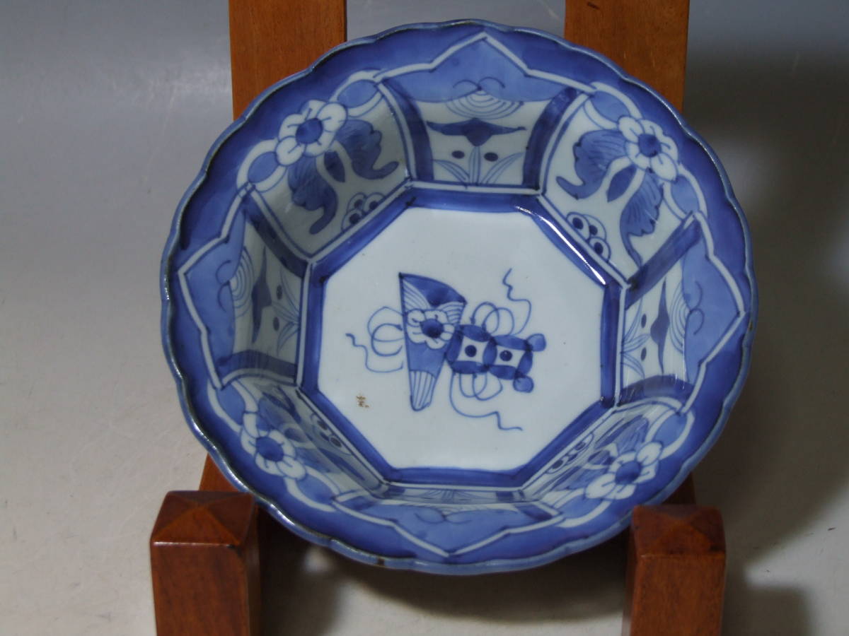 ☆遊心☆古伊万里◎染付 輪花 花図 面取り 中鉢 一客 1096