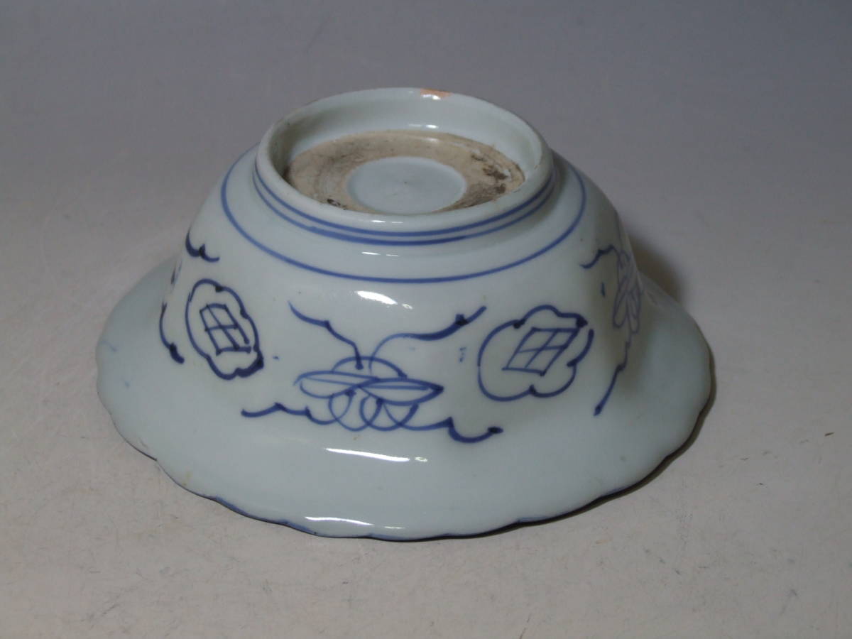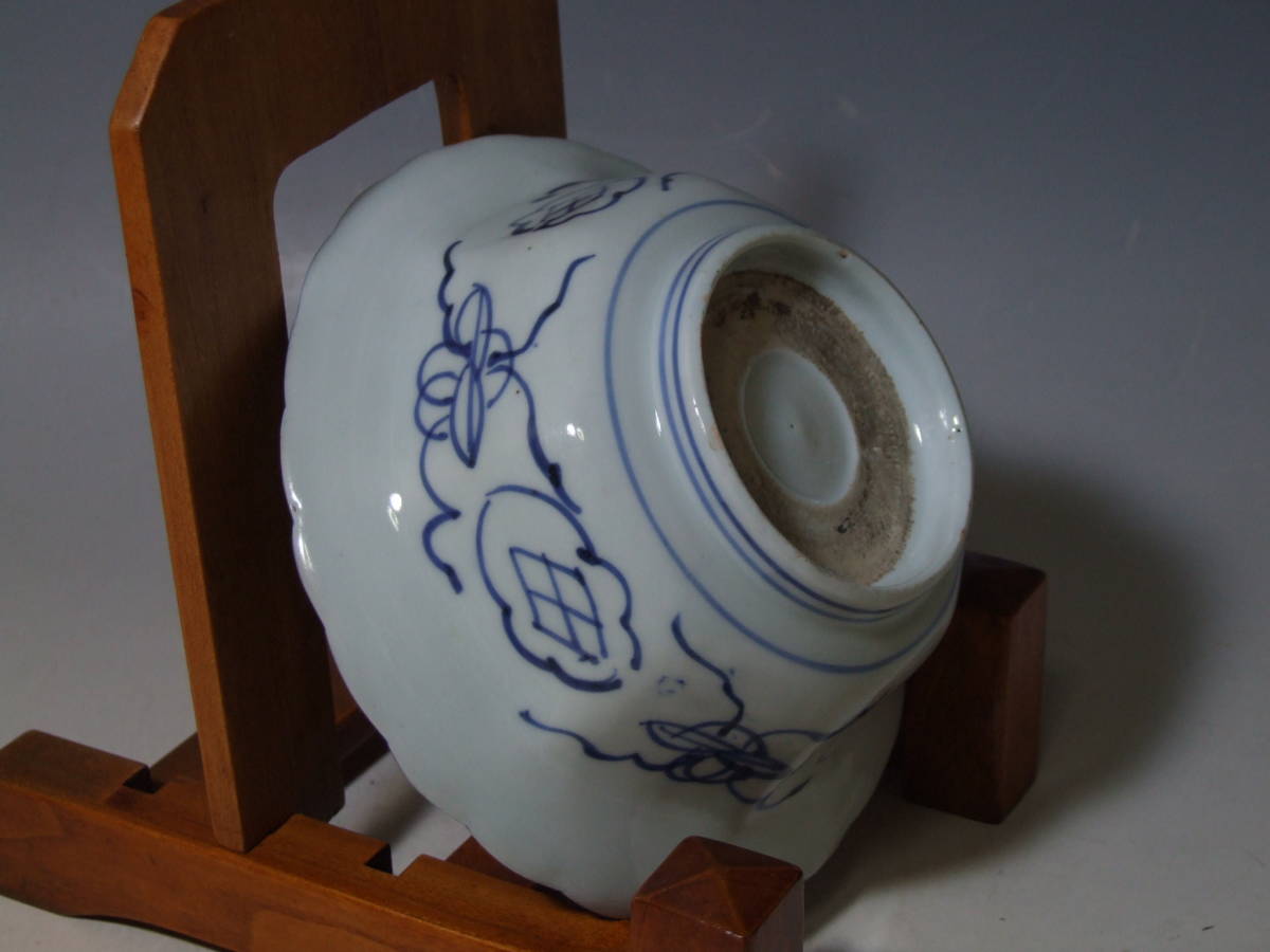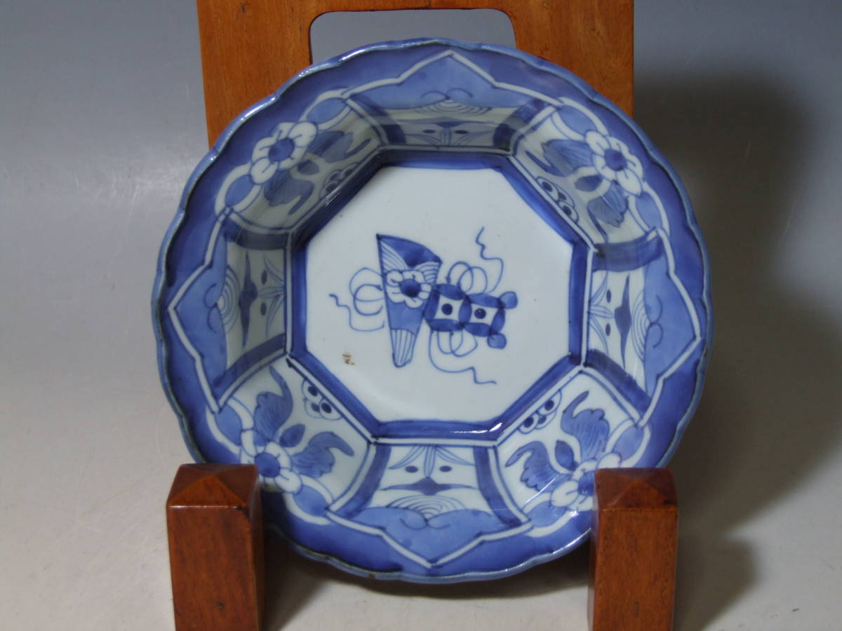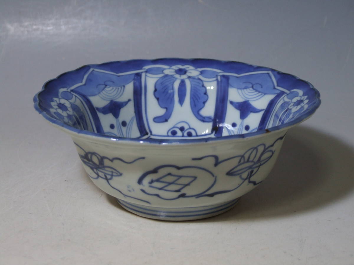 ☆遊心☆古伊万里◎染付 輪花 花図 面取り 中鉢 一客 1096