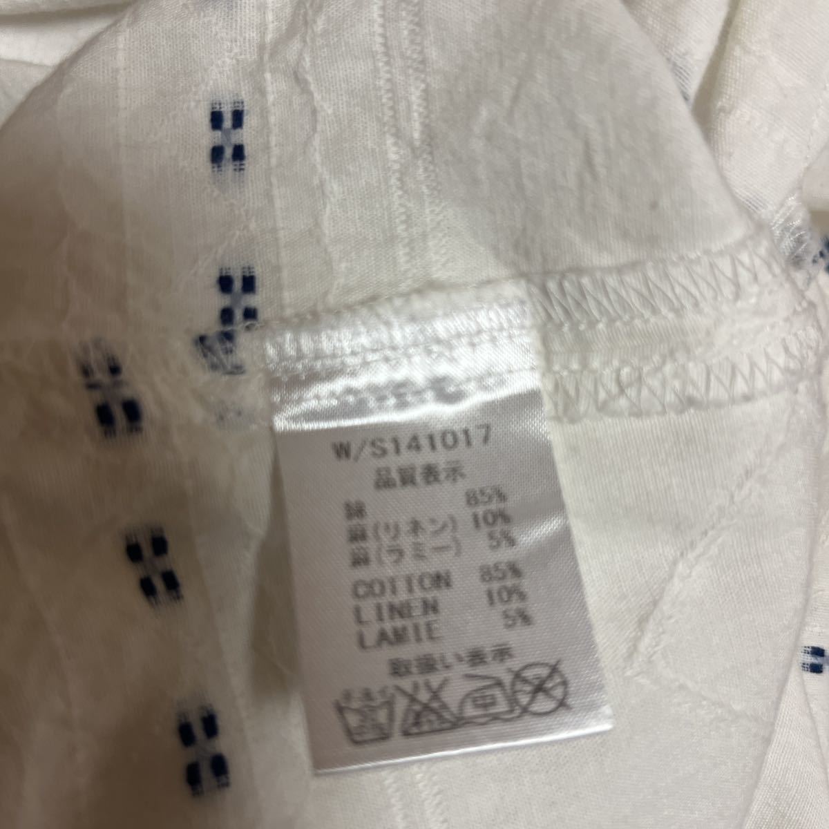 ichi(イチ)★麻混 ワンピース長袖 白地織模様に小さな柄