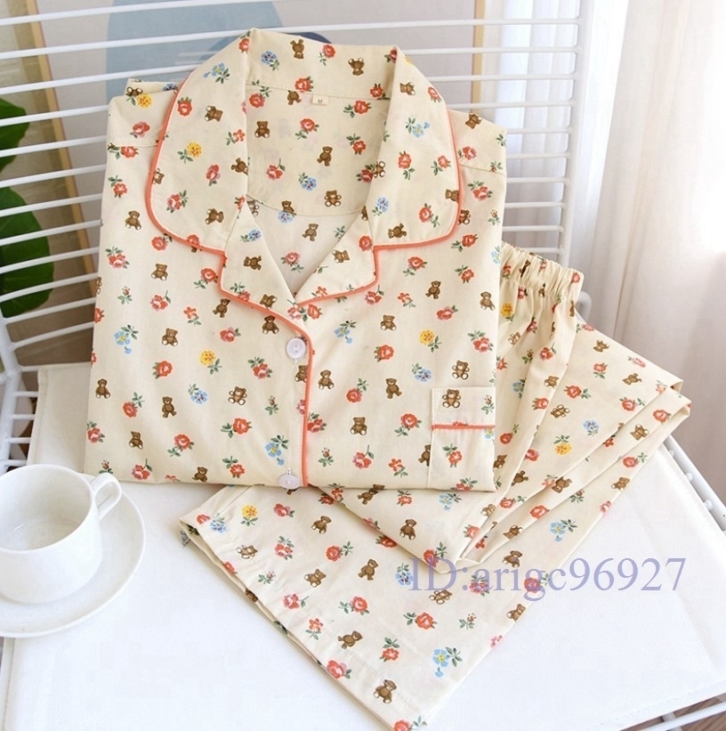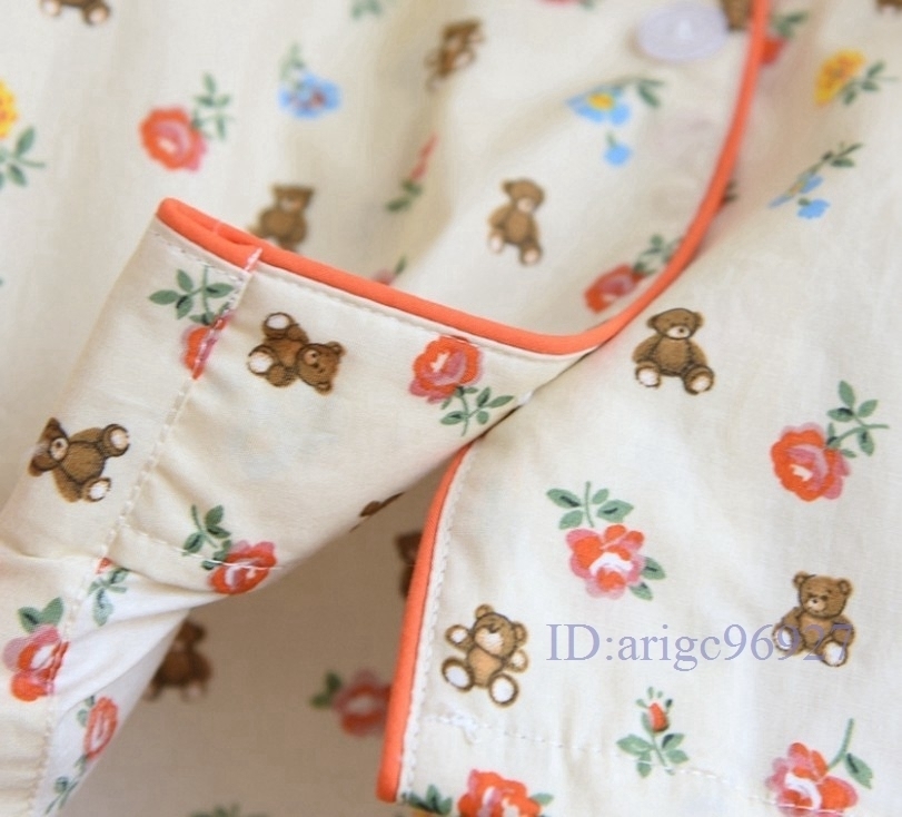 B199★?レディース M.L.XLサイズ 春 秋 綿 ピュア コットン リトルフラワー ベアー柄 柔らか パジャマ 部屋着 ルムウエア 心地良