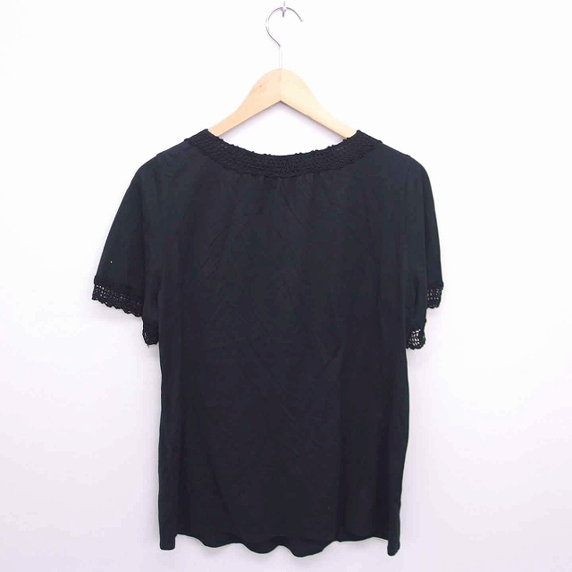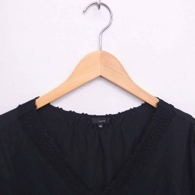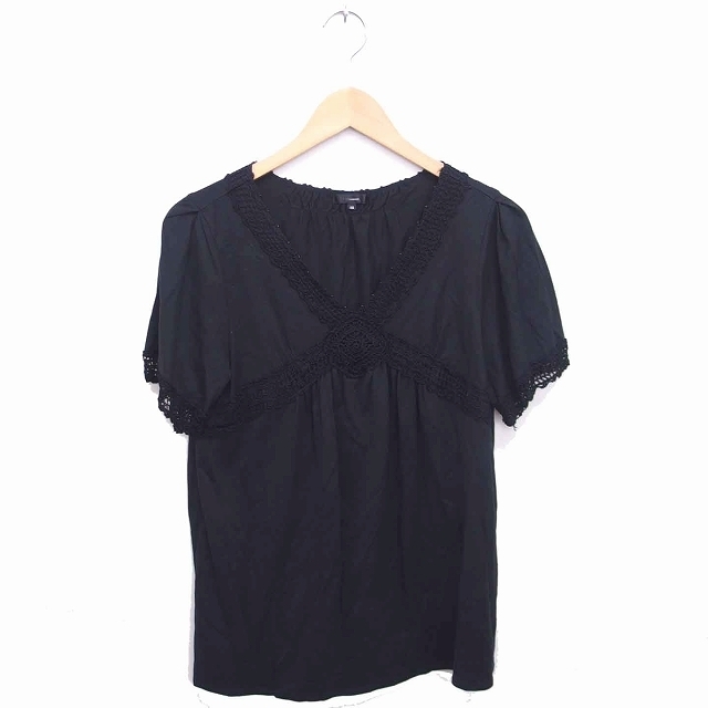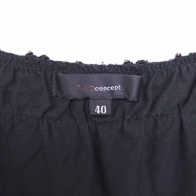 セブンアイディコンセプト 7-IDconcept カットソー Tシャツ Vネック かぎ針 半袖 40 黒 ブラック /TT16 レディース