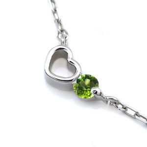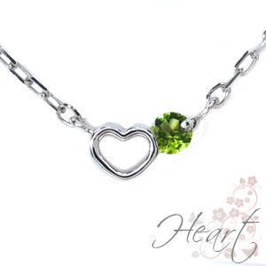 8月誕生石ペリドットを一粒使用した、ハートをモチーフにしたプラチナ製プチネックレス・ペンダントです。