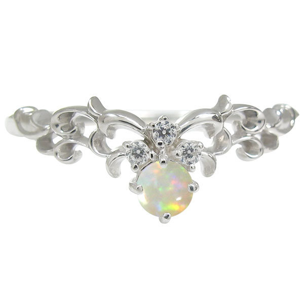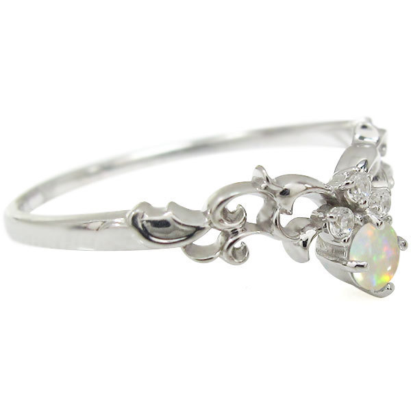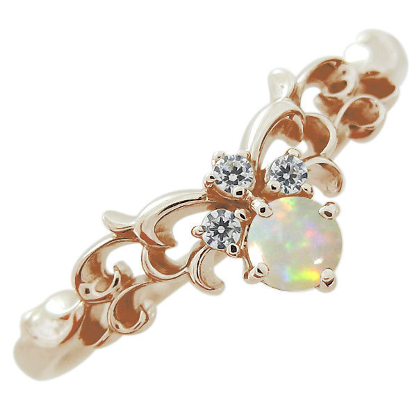 10月誕生石オパールを一粒使用した10金製のティアラ&唐草モチーフリング(指輪)です。