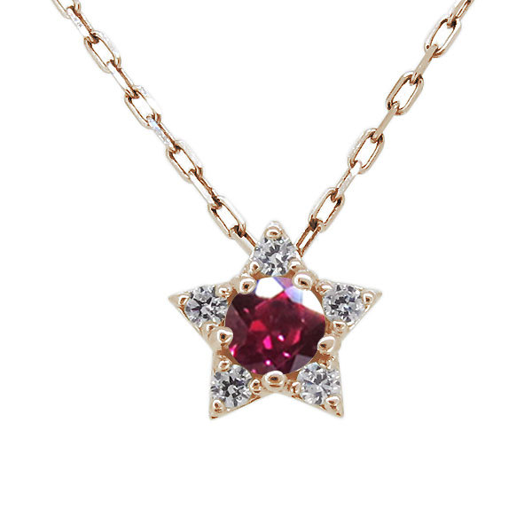 7月誕生石ルビーを使用した18金製の、星(スター)モチーフのネックレス・ペンダントです。