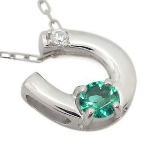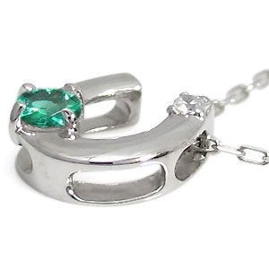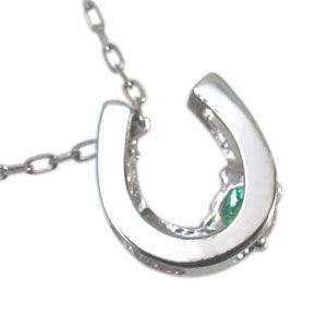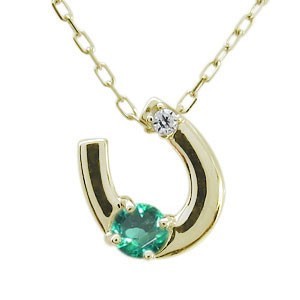 5月誕生石エメラルドを一粒使用した馬蹄(ホースシュー)モチーフの18金製ネックレスペンダントです。