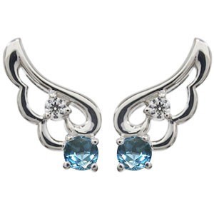 天使の羽 ブルートパーズ ピアス 一粒 エンジェル ピアス クリスマス ポイント消化