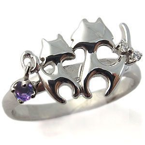 2月誕生石アメジストを一粒使用したネコ(猫)デザインの18金製リングです。