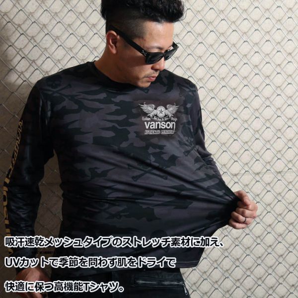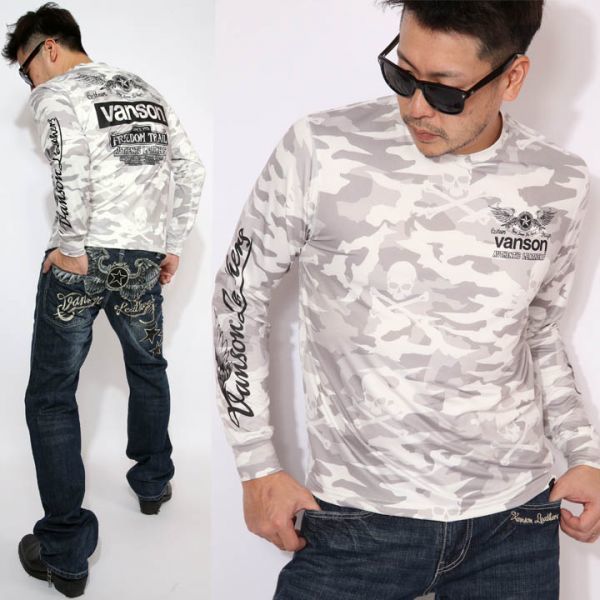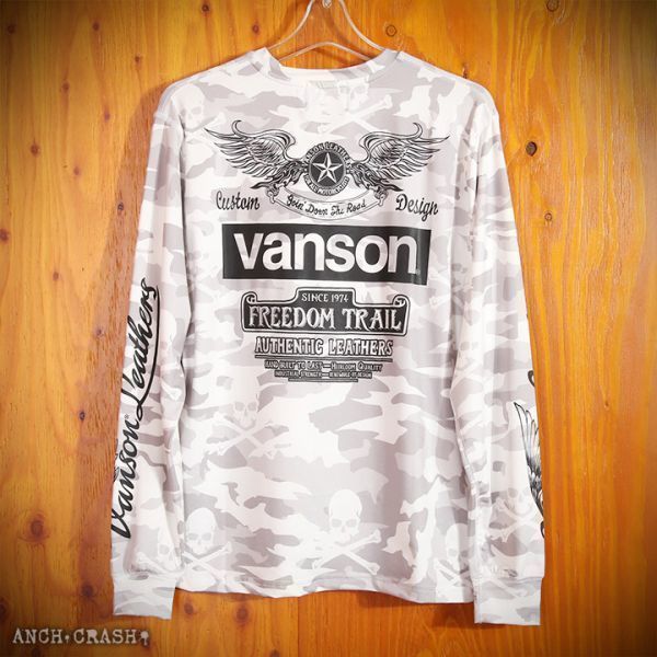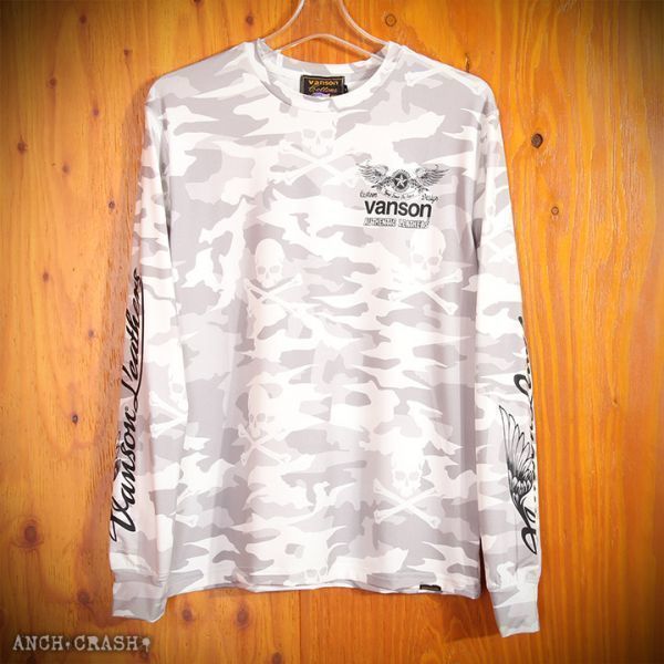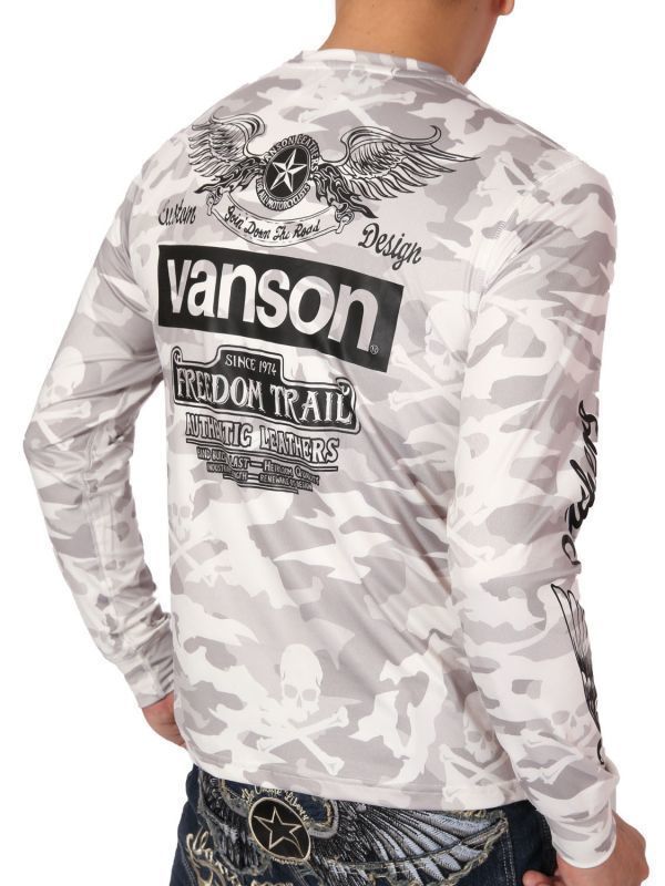 VANSON ドライ長袖Tシャツ ACVL-904 ホワイトカモ【Lサイズ】バンソン 当店別注 吸汗速乾 抗菌防臭 UVカット バイカー