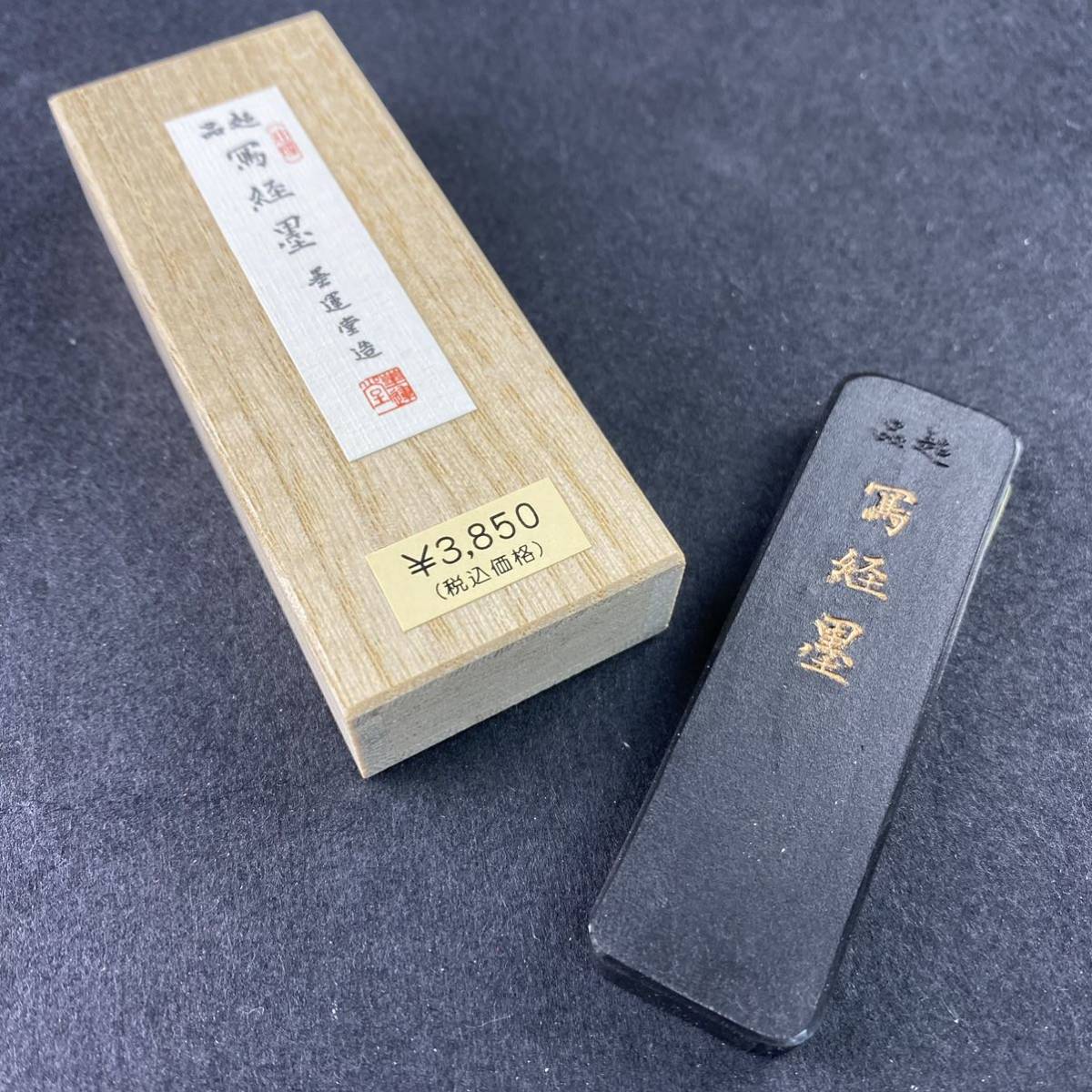 ※写経墨は精選された原料を用い、写経に適する暢び、艶を重視ささた油煙墨。油煙粒子が細かく暢びが良い。普通の濃さから中濃墨位でお使いください。古くなるほど暢びも良くなります。