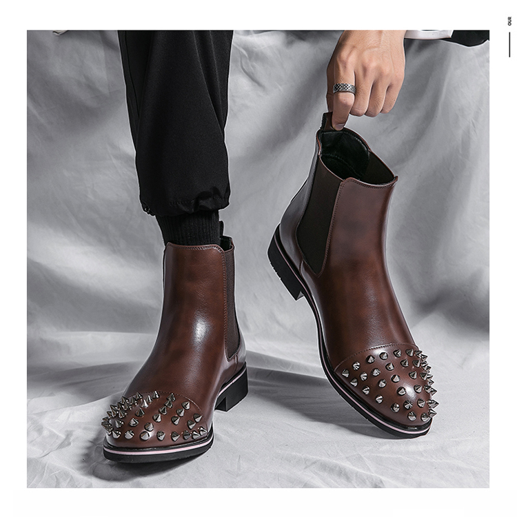 ★新品★メンズ TG21664-27.0cm/44 ショートブーツ ブラウン(2色) ビジネスシューズ ワークブーツ サイドゴア